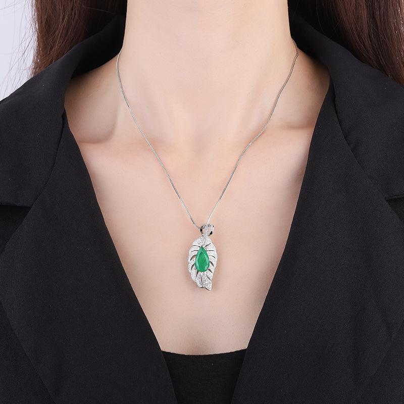 Имитация изумрудного бриллиантового ожерелья Винтажный цвет сокровище параиба лист кулон 2024 модная ключичная цепочка — купить товар онлайн с бесплатной доставкой до всему миру!