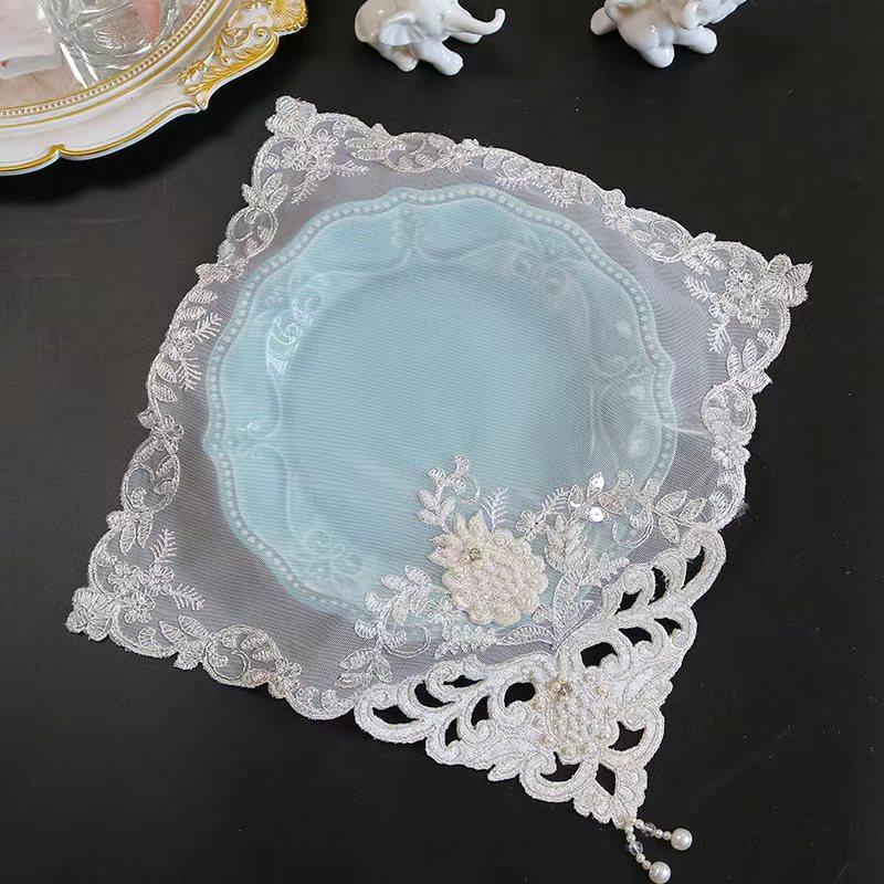 Бежевая сетка вышивка бисером цветочный узор тканевая салфетка под тарелку Свадьба Рождество подставка под тарелку кухонный декор стола и аксессуары