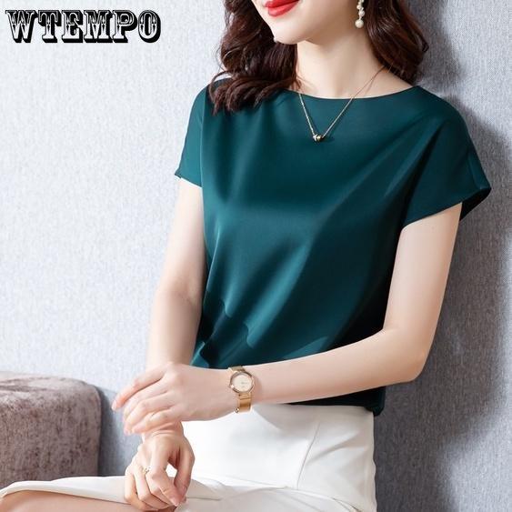Женская атласная блузка, элитная модная шелковистая футболка с коротким рукавом, повседневные топы — купить товар онлайн с бесплатной доставкой по всему миру!