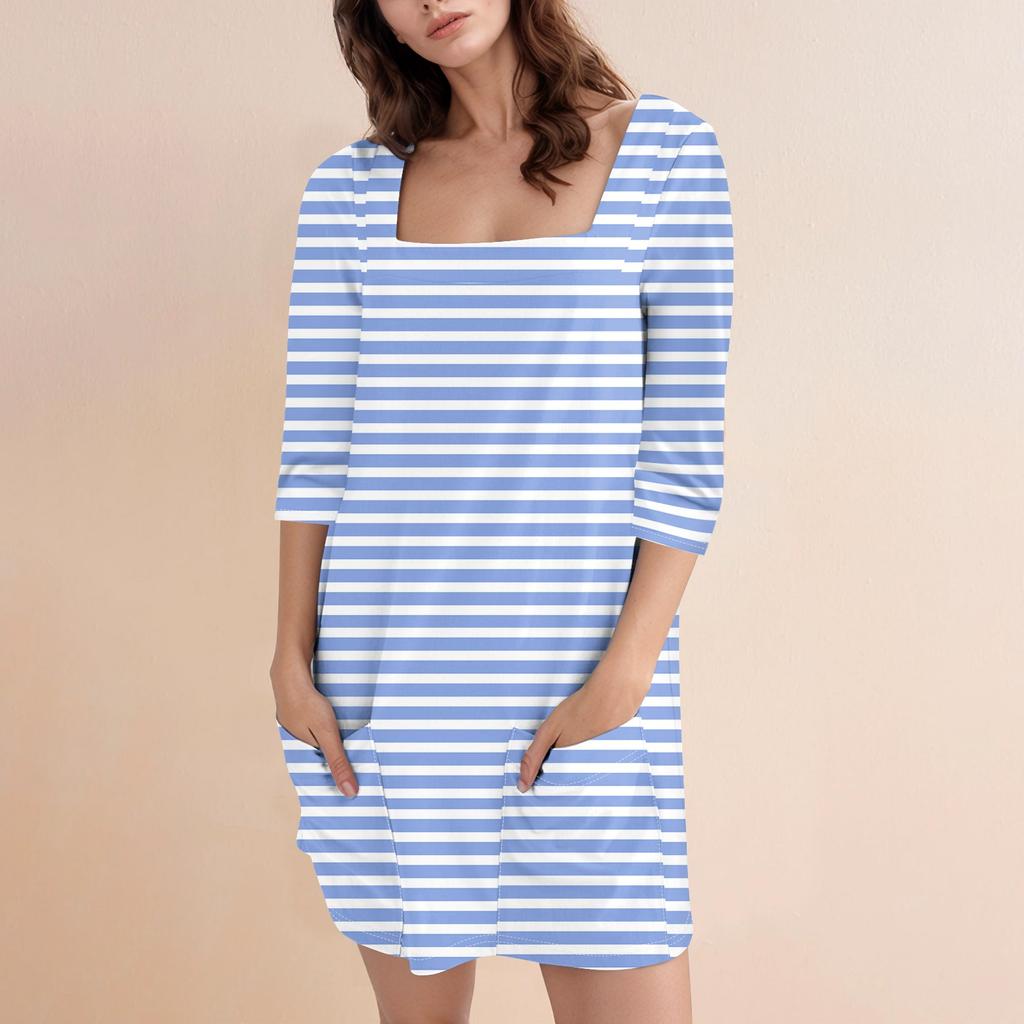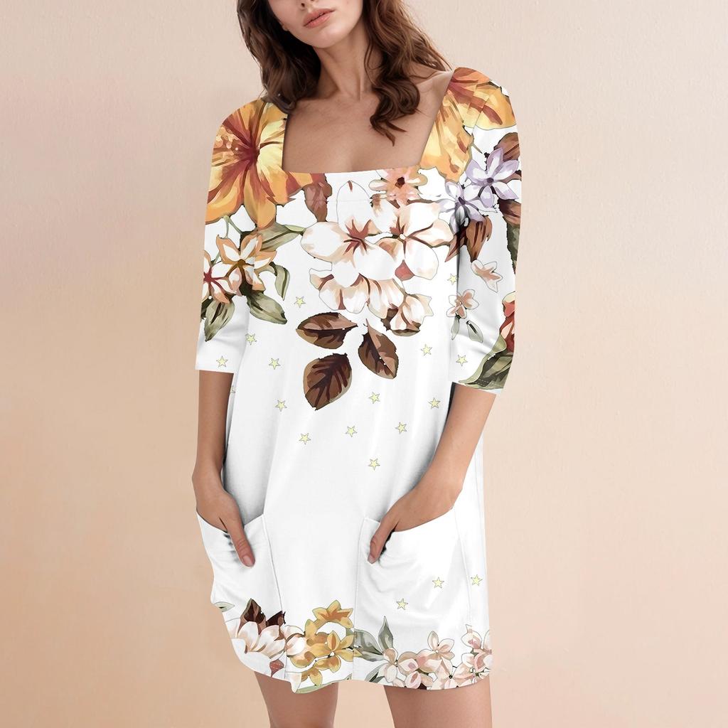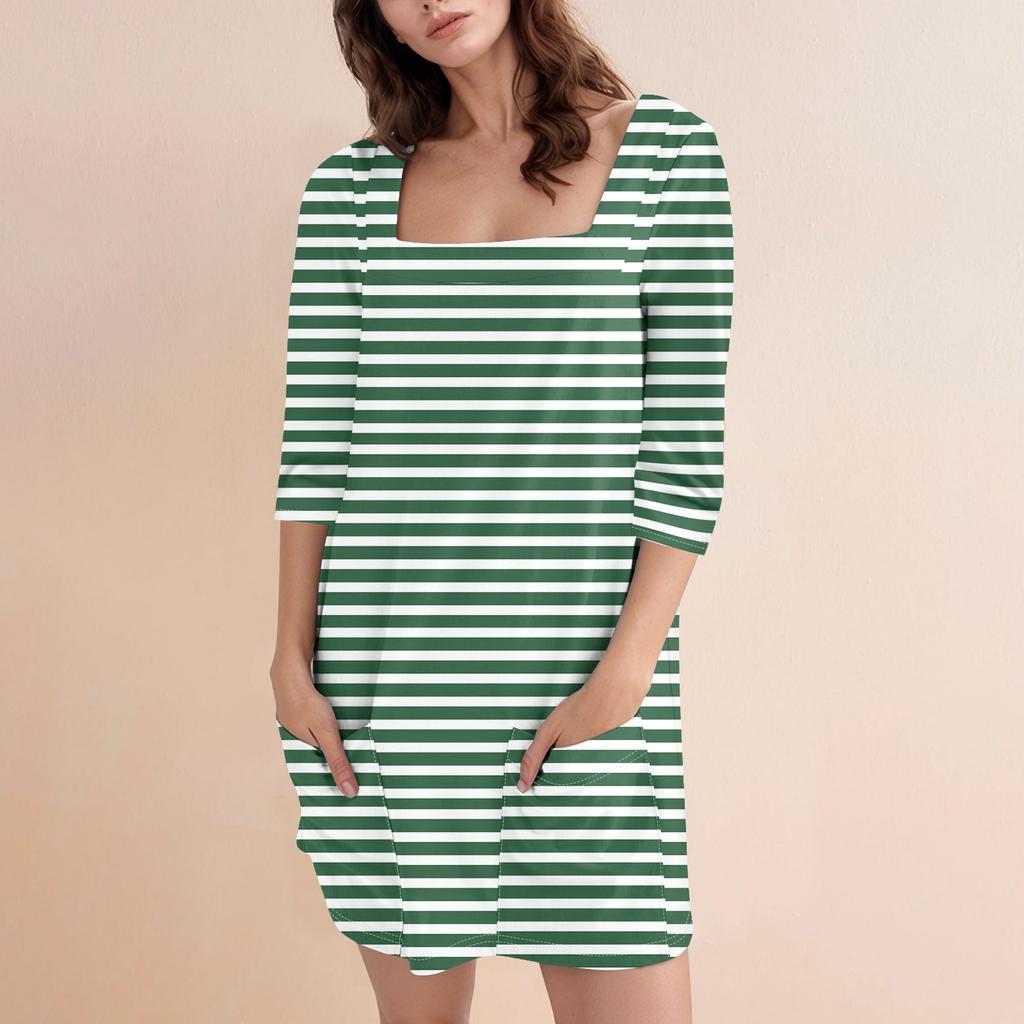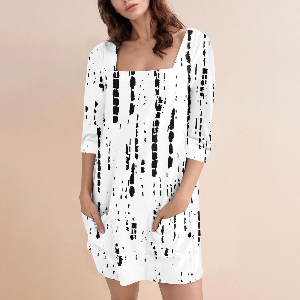 Женское модное повседневное короткое платье с квадратным вырезом и рукавом 3/4