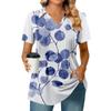 Женские футболки с коротким рукавом, плиссированные, с V-образным вырезом, с принтом, с воротником, летние топы, модные, деловые, повседневные, рабочие
