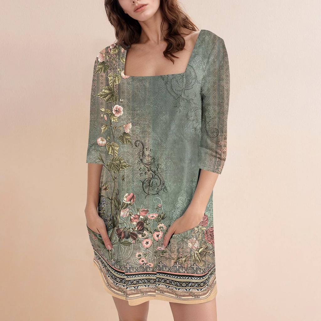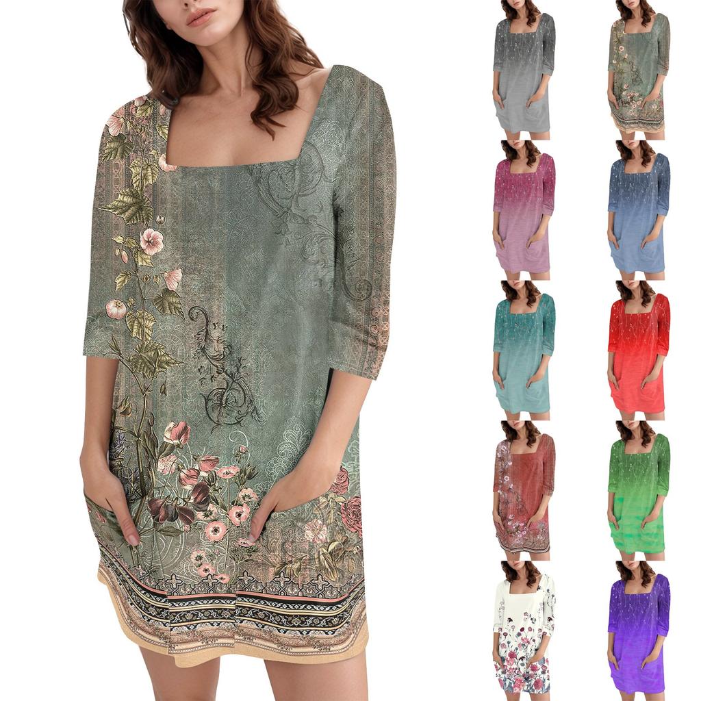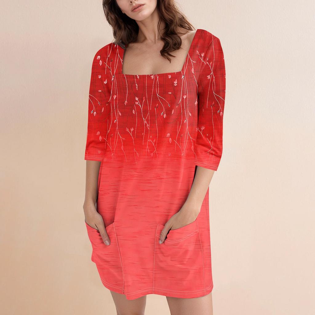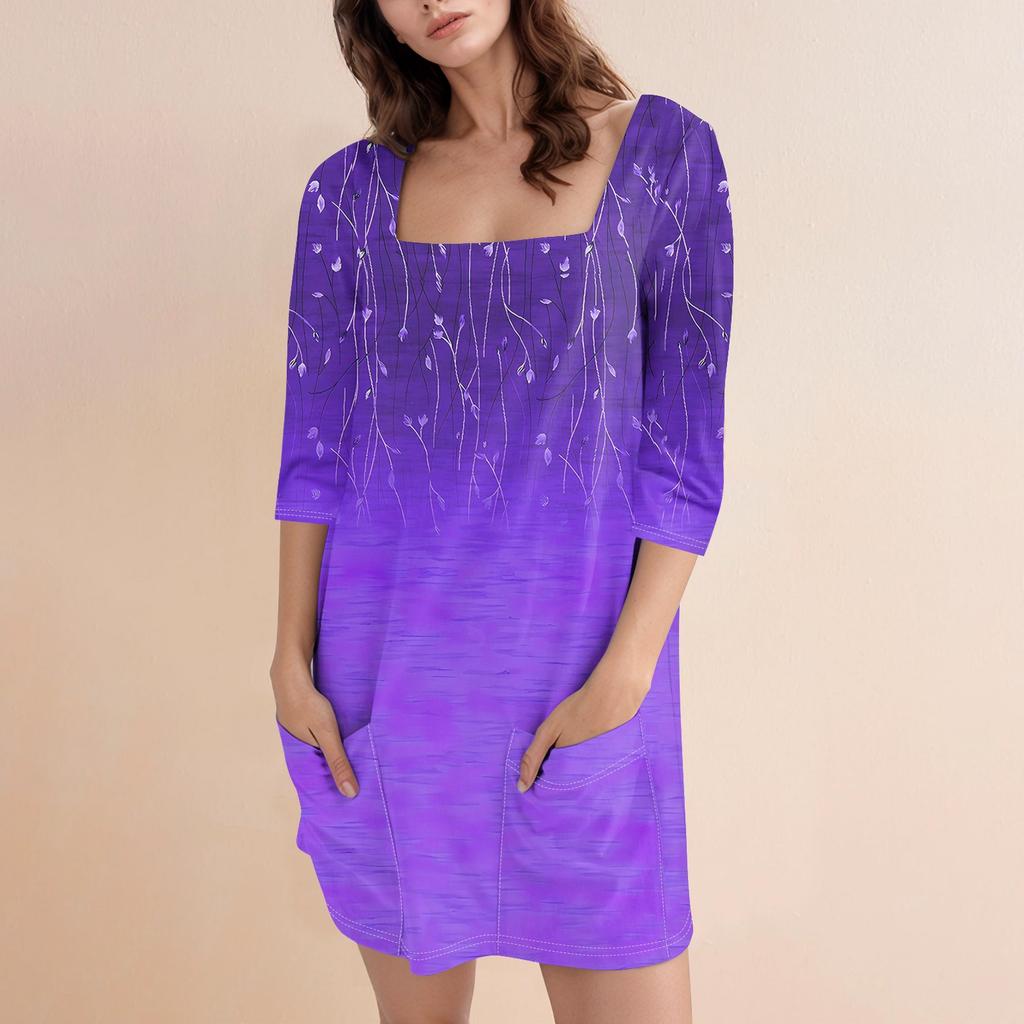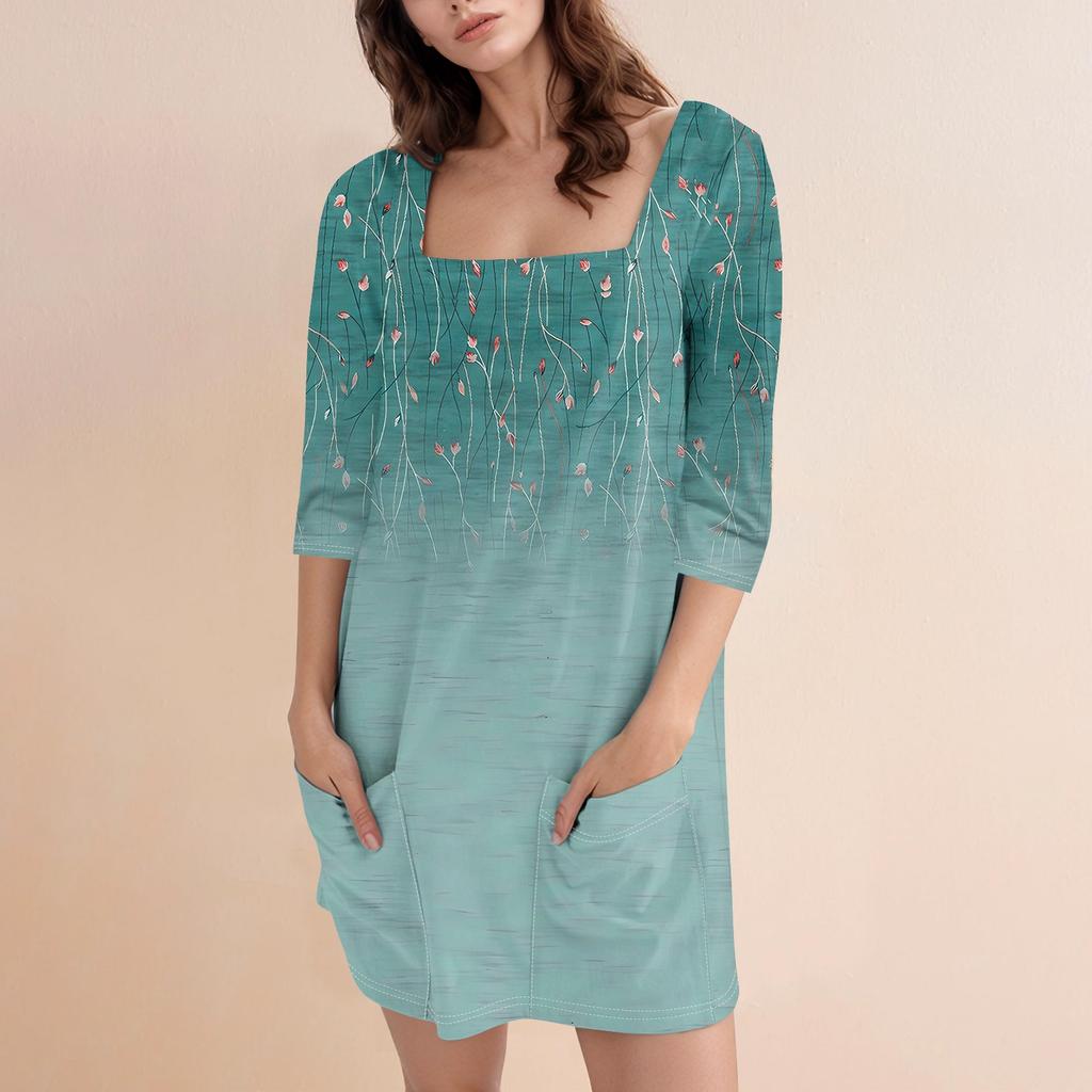 Женское модное повседневное короткое платье с квадратным вырезом и рукавом 3/4