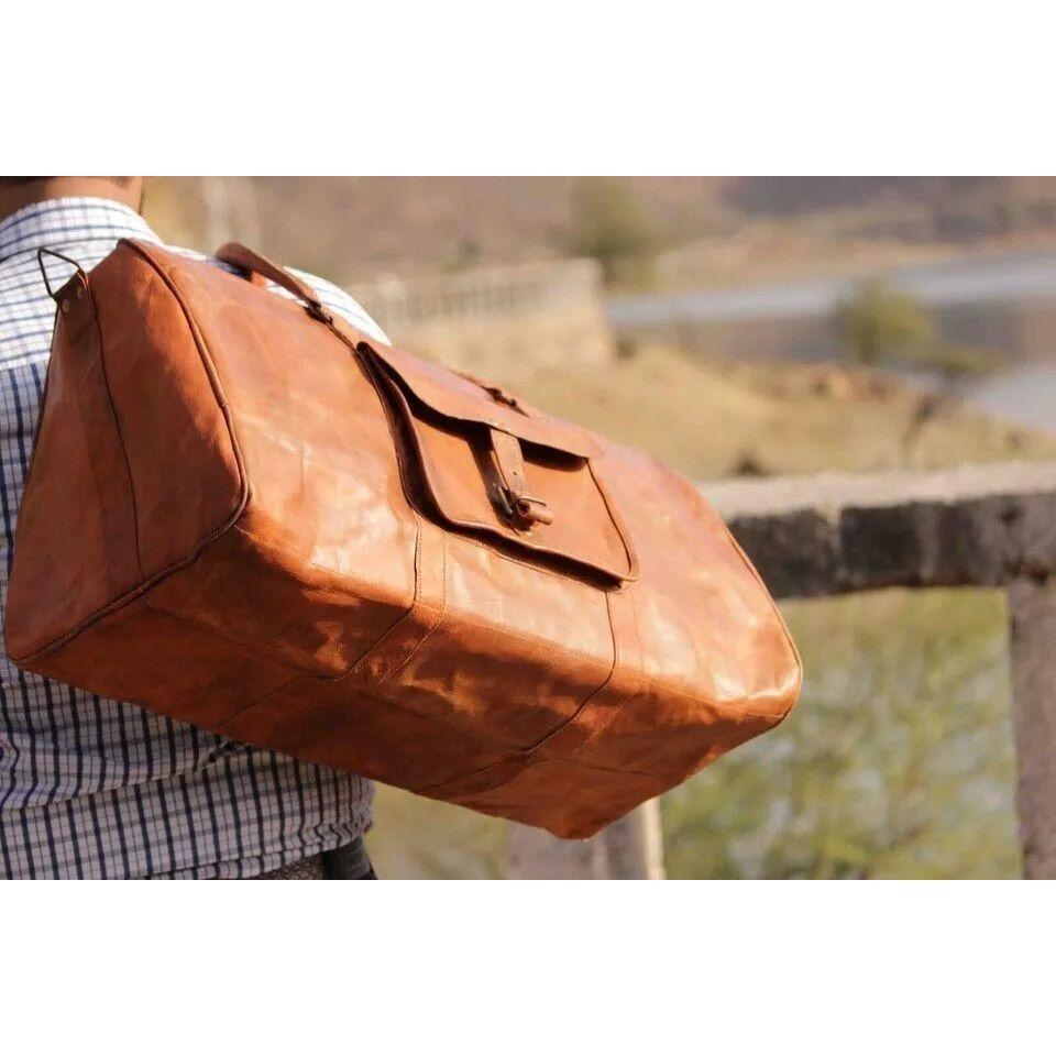 Кожаная дорожная сумка для мужчин и женщин 20 дюймов из натуральной козьей кожи для путешествий на ночь