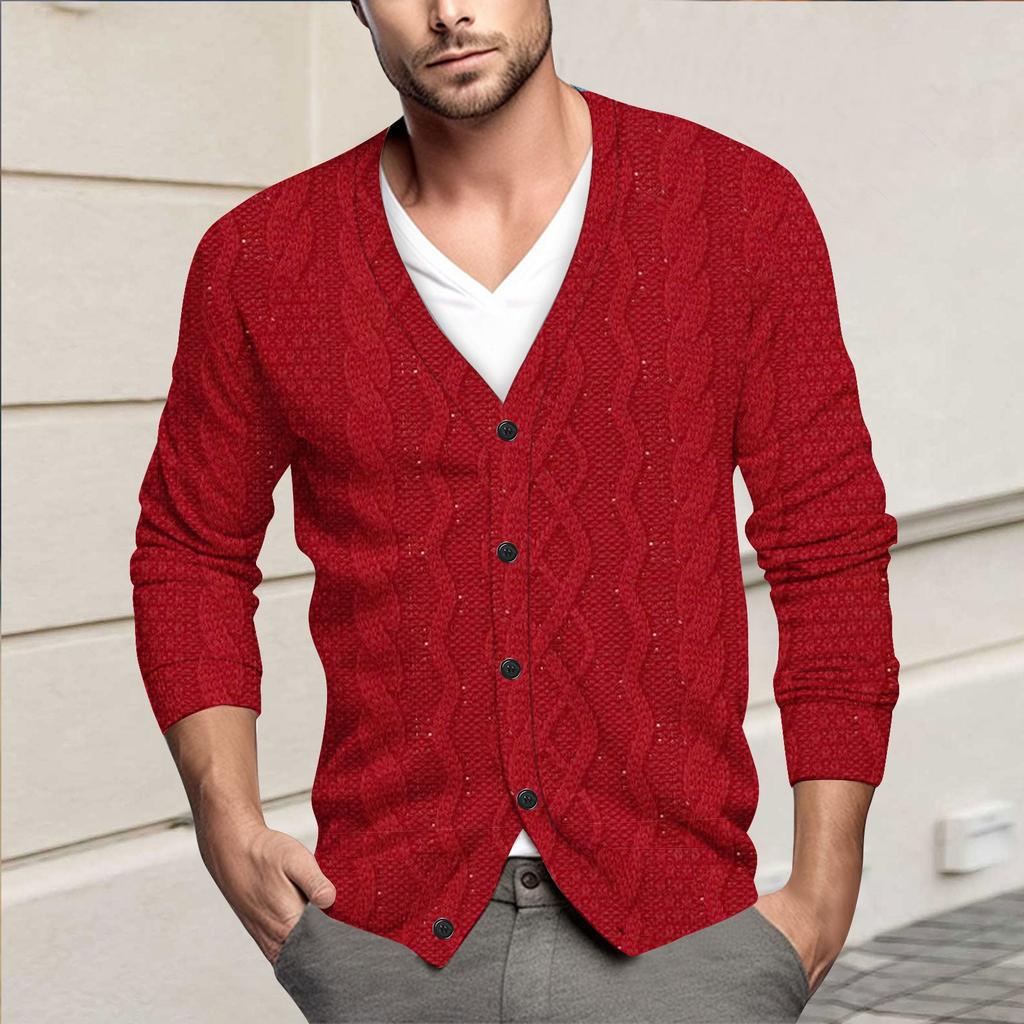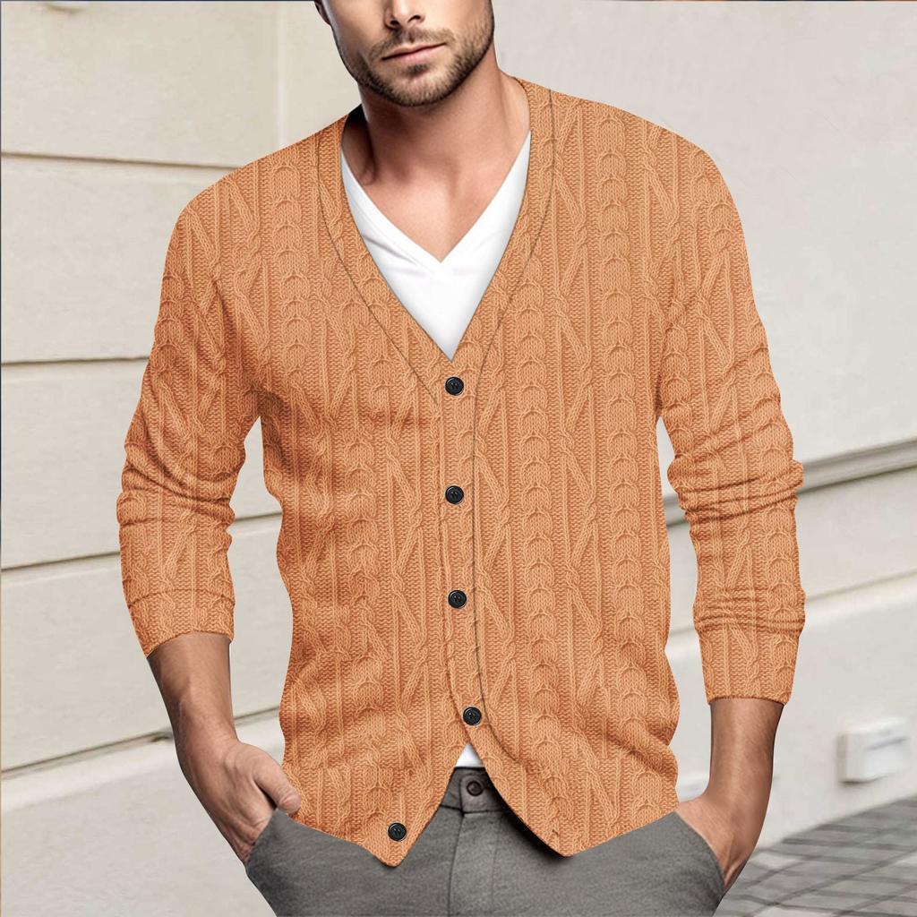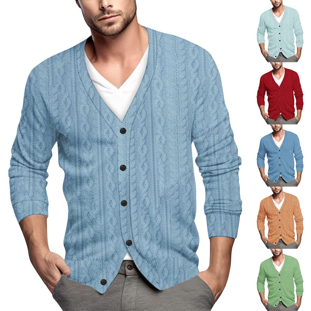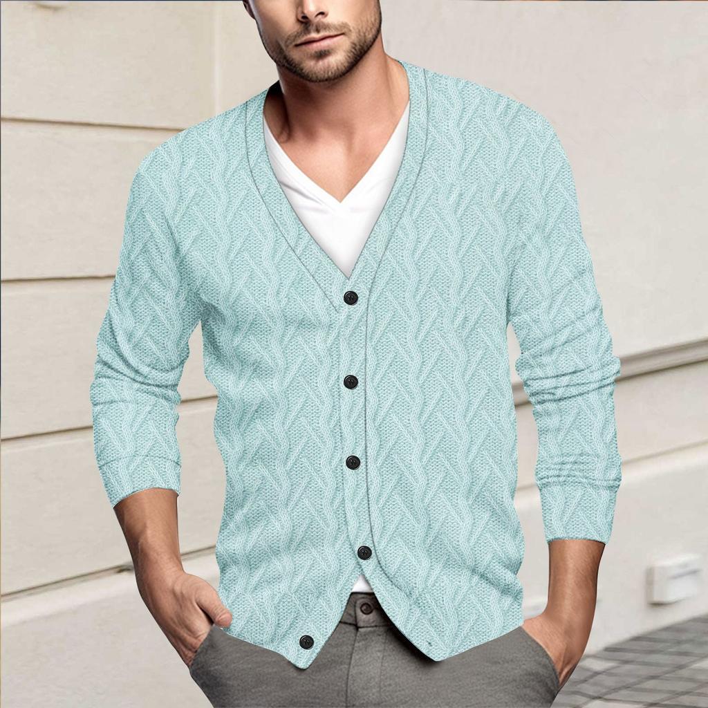 Мужская повседневная однобортная модная куртка-кардиган с длинными рукавами на пуговицах