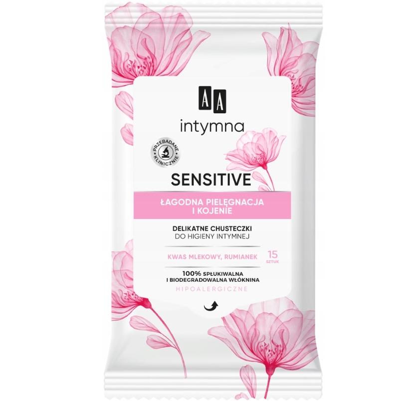 AA Intymna, Chusteczki do higieny intymnej Sensitive, 15 sztuk
