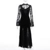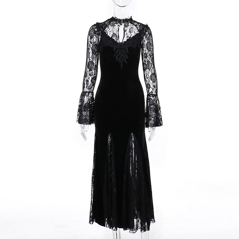 Летний темперамент, сексуальное, слегка прозрачное, облегающее, длинное, темное кружевное платье с длинными рукавами и рыбьим хвостом для женщин, платья