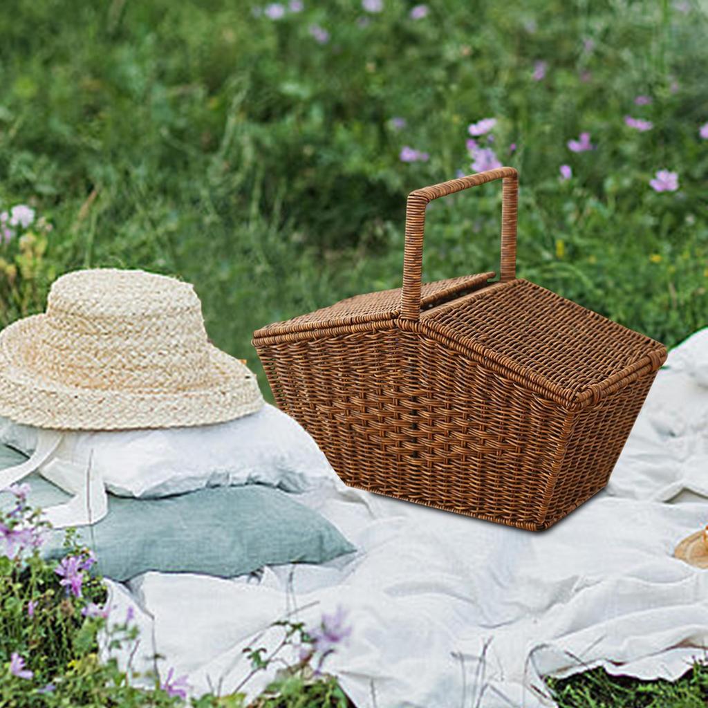 Пустая корзина для пикника с крышкой, плетеное решение для хранения фруктов и хлеба