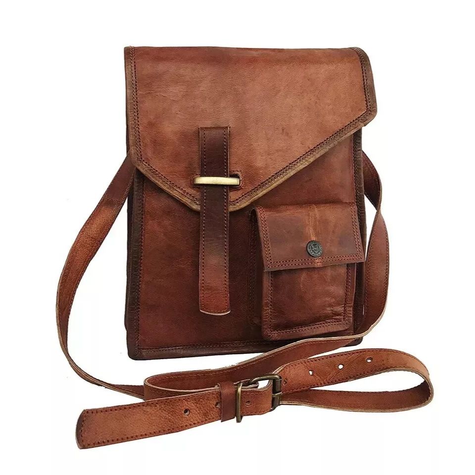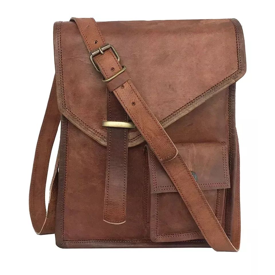 Сумка-мессенджер из козьей кожи ручной работы. Сумка через плечо. Винтажная натуральная коричневая сумка.