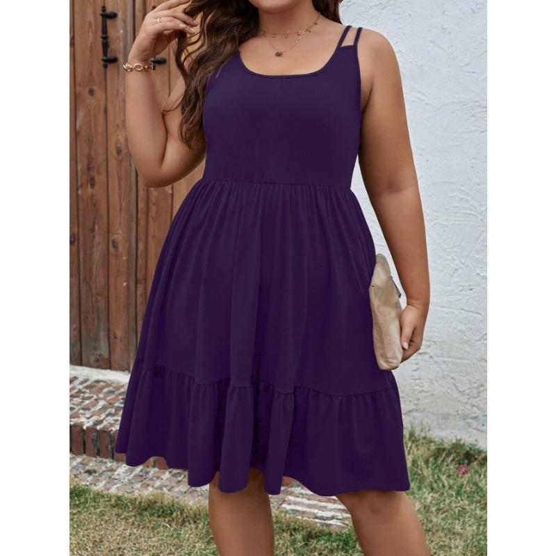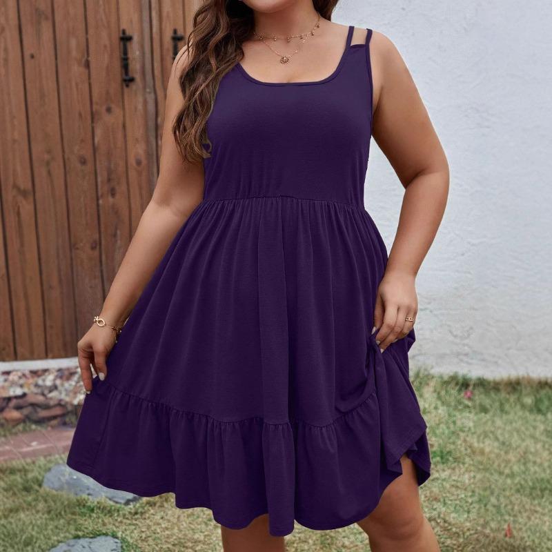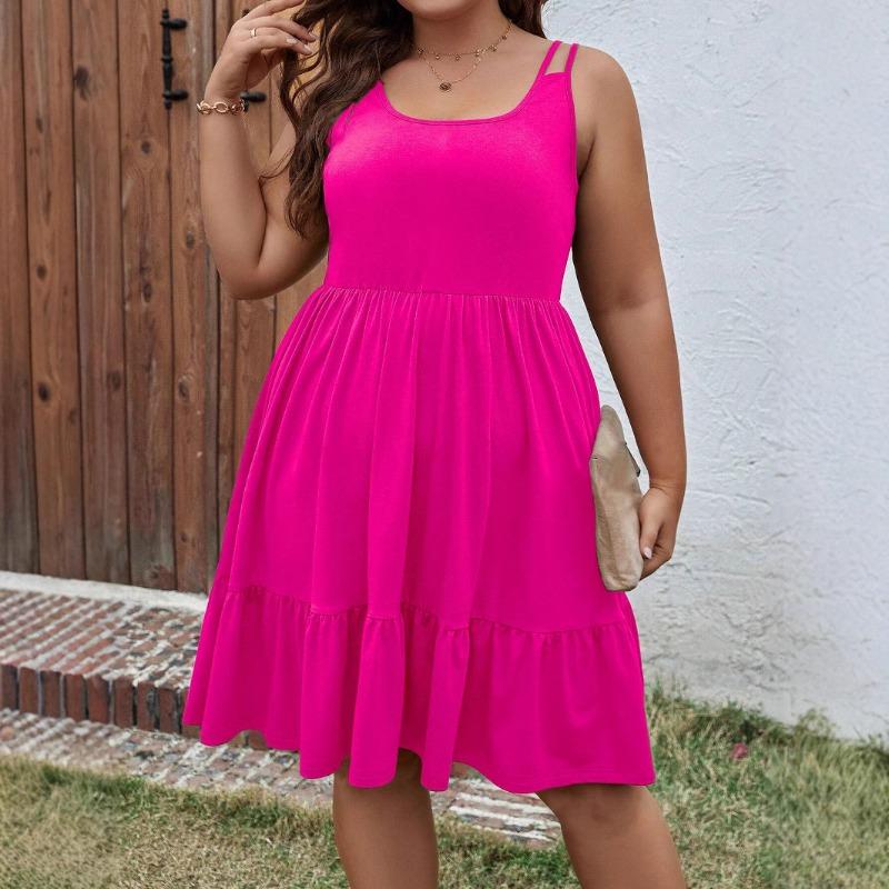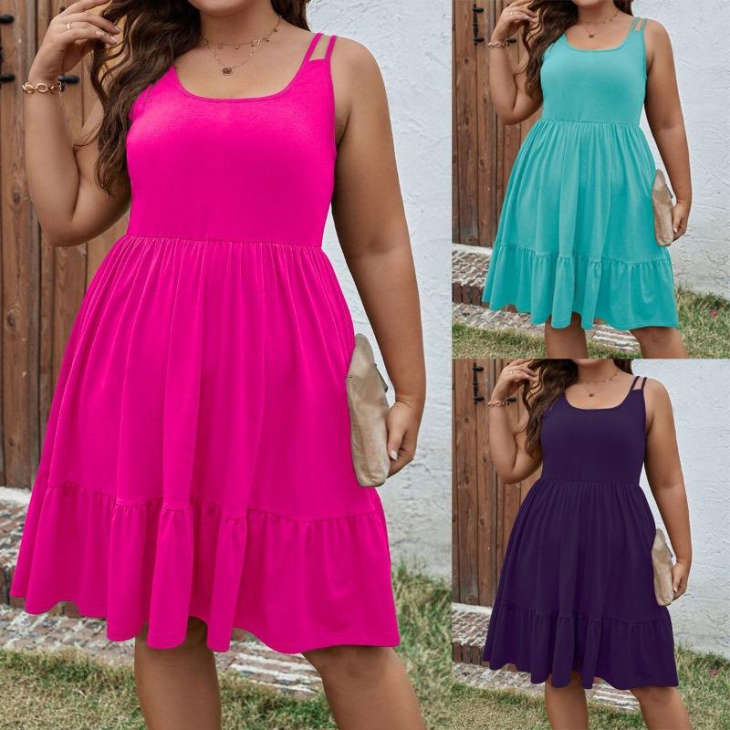 Весна Лето Плюс Размер Женская Одежда Свободные Однотонные Без Рукавов Средней Длины Повседневные Платья