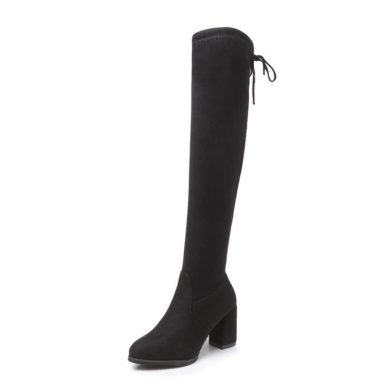 Зимние сапоги Martin выше колена с эластичным носком и бархатом на толстом высоком каблуке 2022 года — купить товар онлайн с бесплатной доставкой по всему миру!