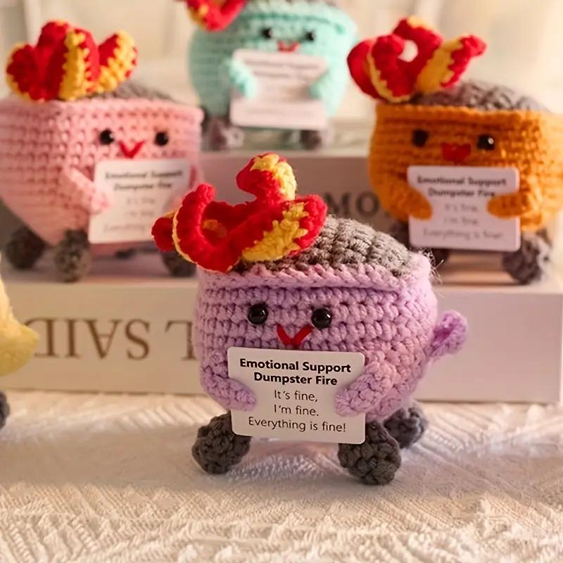 Милые плюшевые игрушки для эмоциональной поддержки, забавные мультяшные куклы ручной работы, связанные крючком, для мусорных контейнеров, для релаксации, домашнего офиса, деградации
