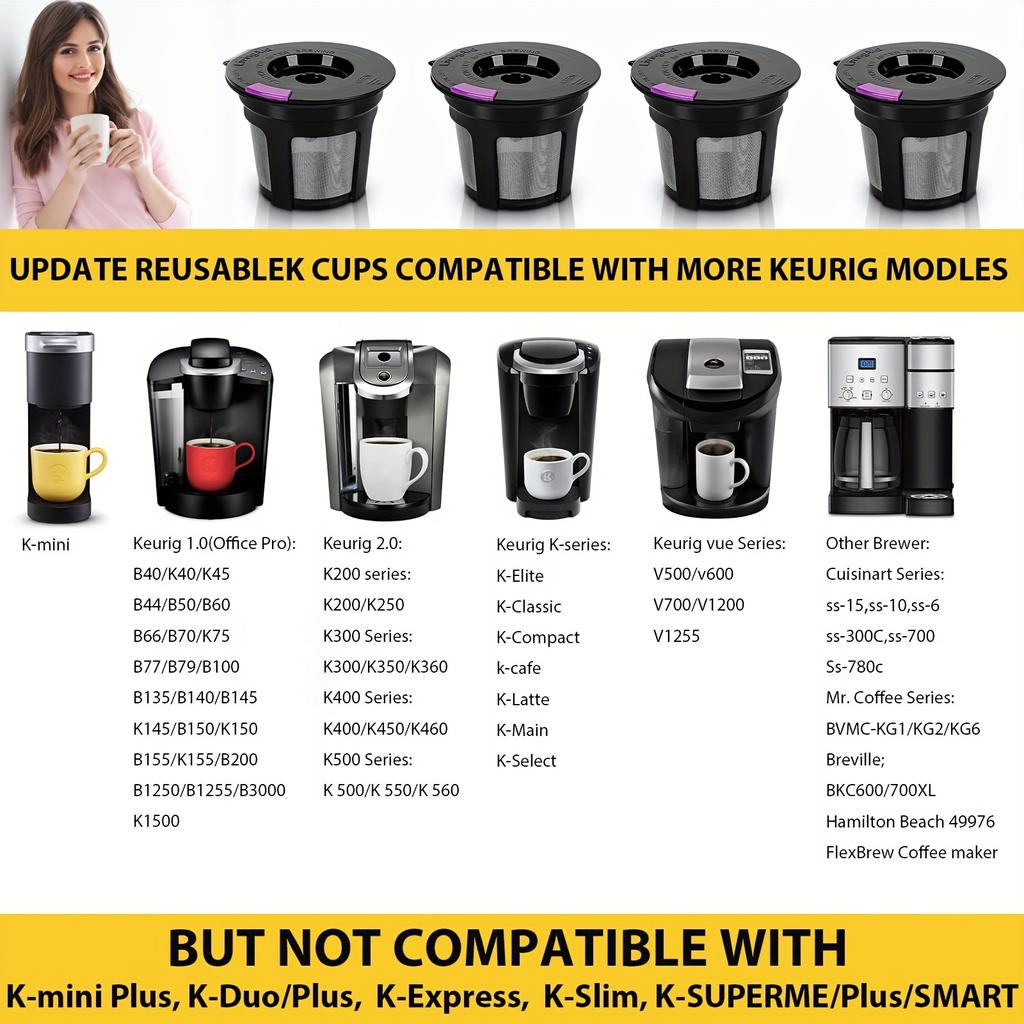 4 шт. многоразовых стакана K для кофеварок Keurig 2.0 и 1.0, универсальные одноразовые сменные фильтры для кофе без бисфенола А, легкая очистка