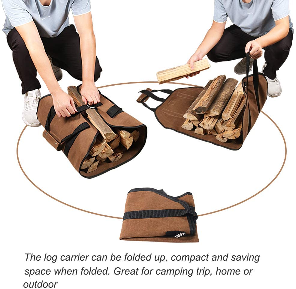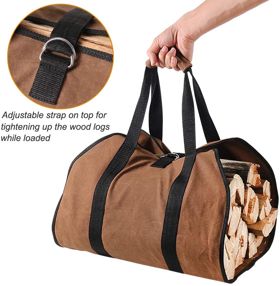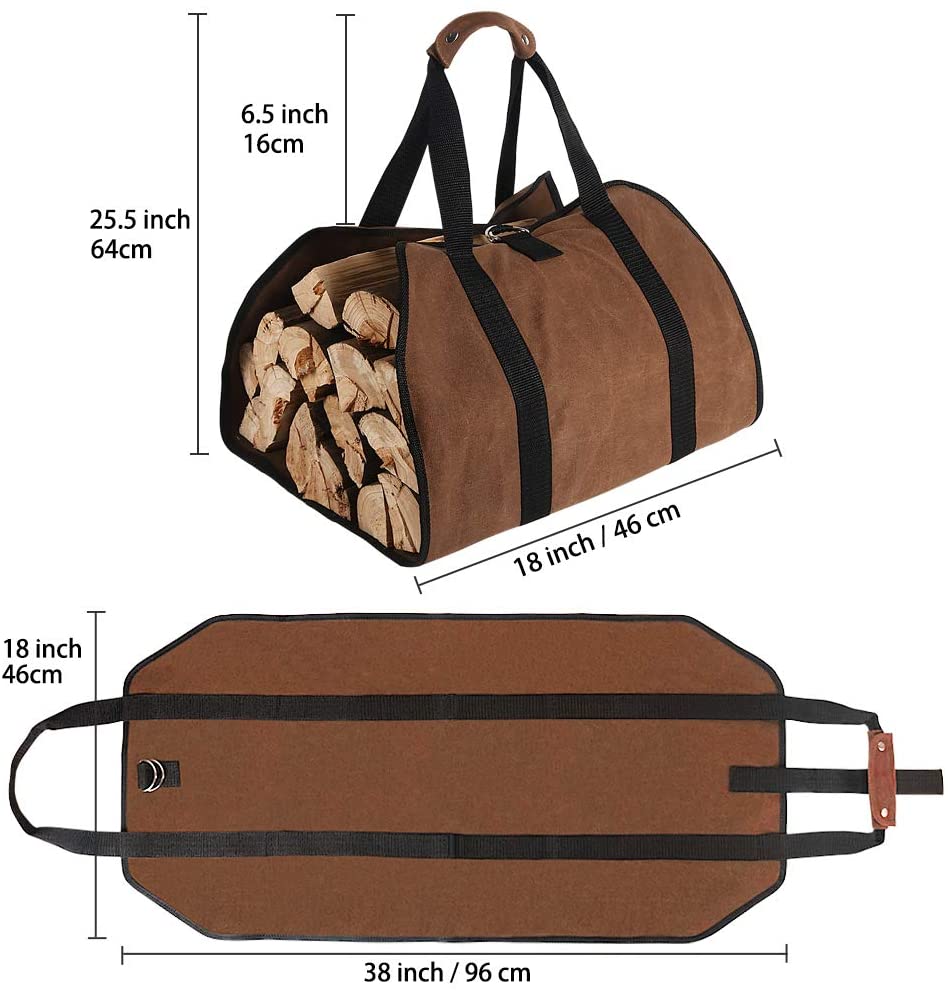 Сумка-тоут для хранения дров из холста, вощеный камин, большая сумка для переноски дров с ручками, ремень безопасности для кемпинга, на открытом воздухе, в помещении
