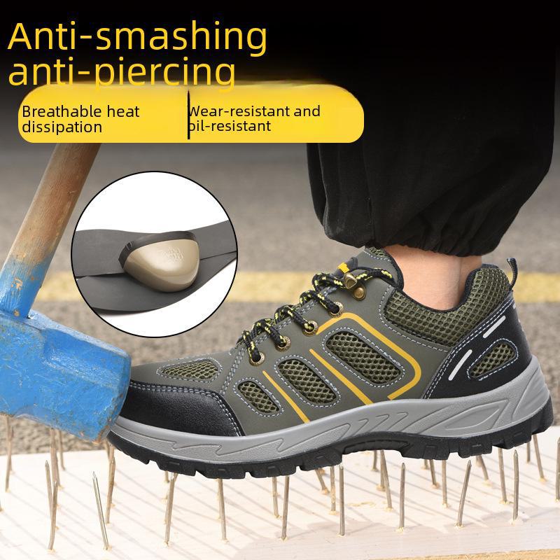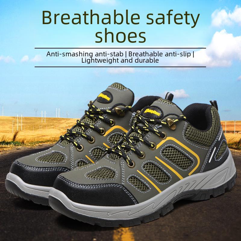 Мужская летняя рабочая защитная обувь со стальным носком: Воздухопроницаемый, противоударный, противопрокольный