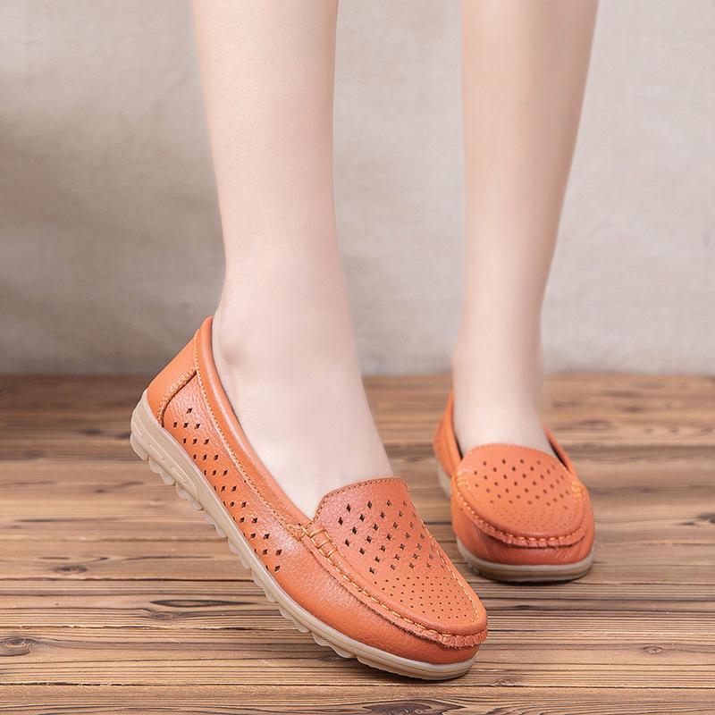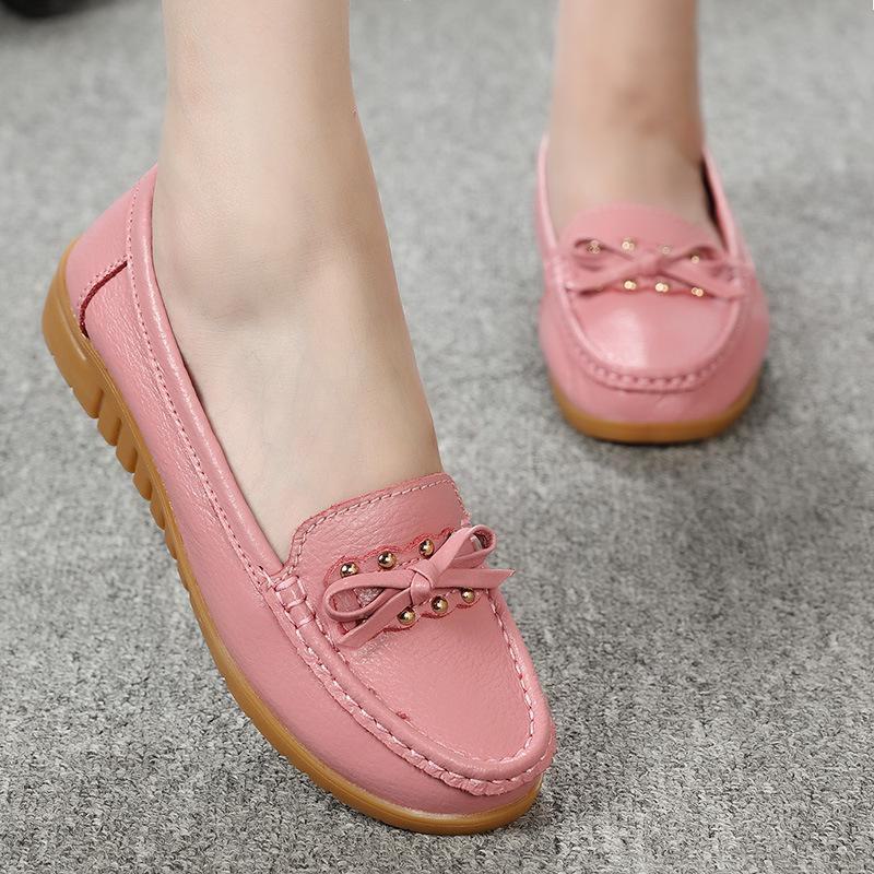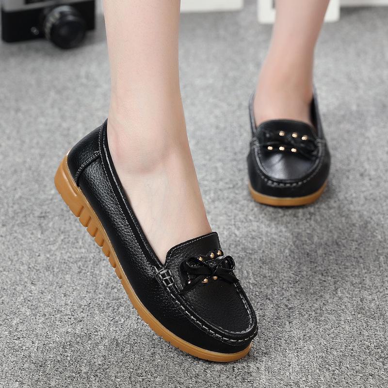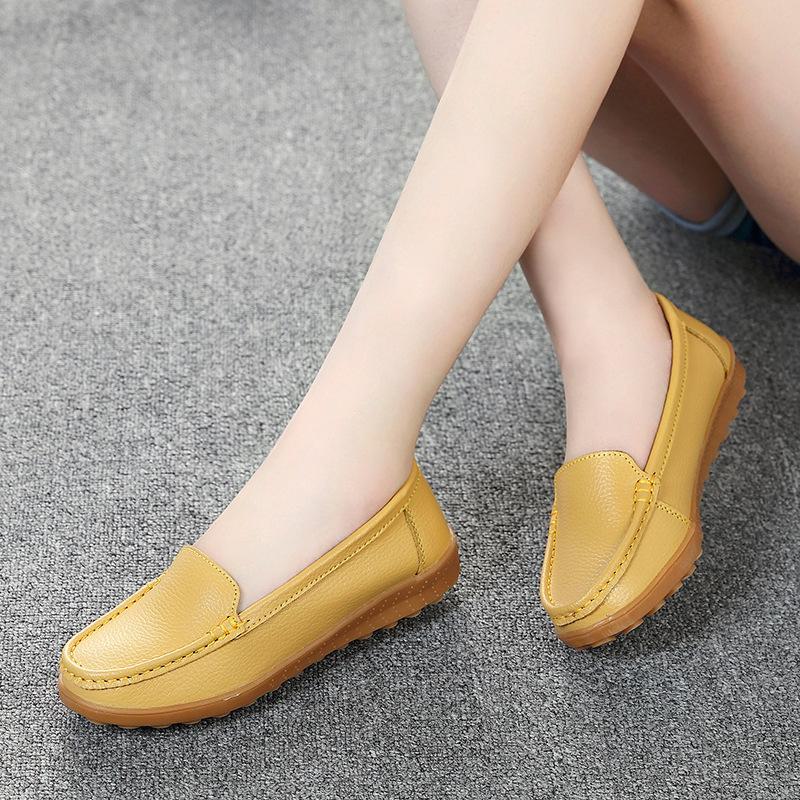 Женские мокасины из натуральной кожи - Мягкая подошва, без застежек, из коровьей кожи, для мам, повседневная обувь для людей среднего и пожилого возраста