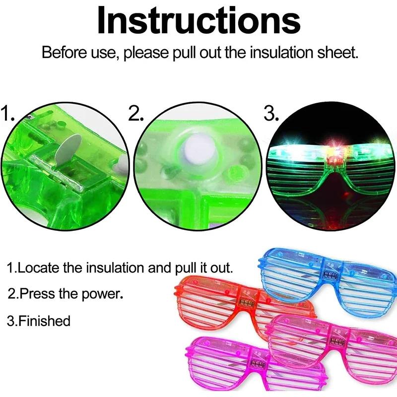 50 шт. светодиодных очков, светящиеся солнцезащитные очки для вечеринок, жалюзи, очки-жалюзи, светящиеся в темноте, неоновые, рождественские, день рождения, свадьба, вечеринка, принадлежности
