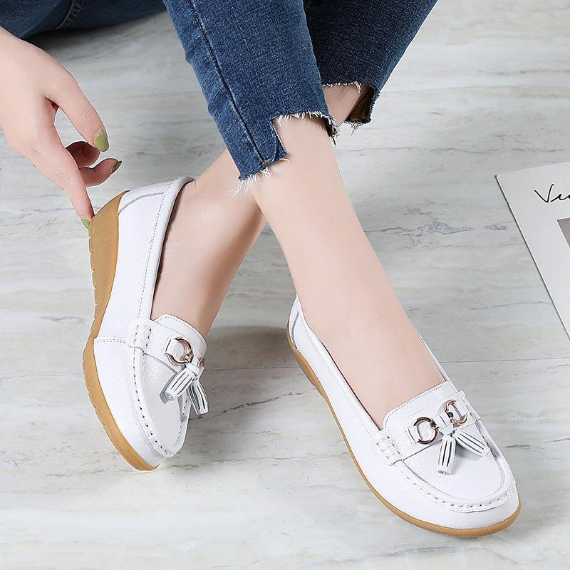 Весенние и осенние туфли на танкетке из кожи для женщин — мягкая подошва, полый дизайн, идеально подходят для людей среднего и пожилого возраста