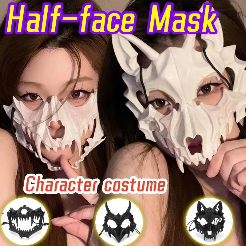 Маска на Хэллоуин Маска на пол-лица, Драконий Бог Свирепый Тигр Ночной Вилка Тэнгу Человек Волк Маска Выступление Черепа Маски