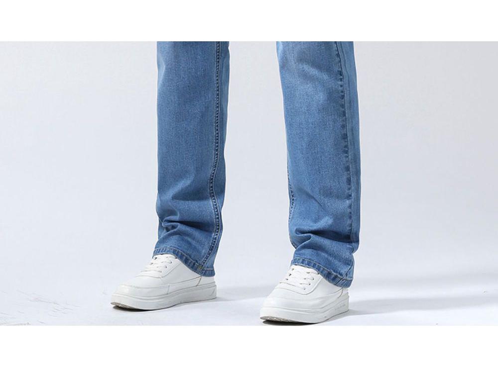 Эти светло-голубые джинсы из ледяного шелка созданы для комфорта и стиля в весенний и осенний сезоны.. Изготовленные из смеси высококачественных материалов, включая ткани в ковбойском стиле и хлопковые ткани, они имеют повседневный, свободный, прямой крой, который идеально подходит для любой непринужденной прогулки.. Следуйте тренду с этими универсальными джинсами, которые легко сочетают в себе моду и функциональность, создавая непринужденный, но стильный образ.