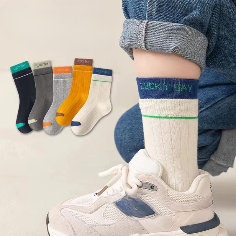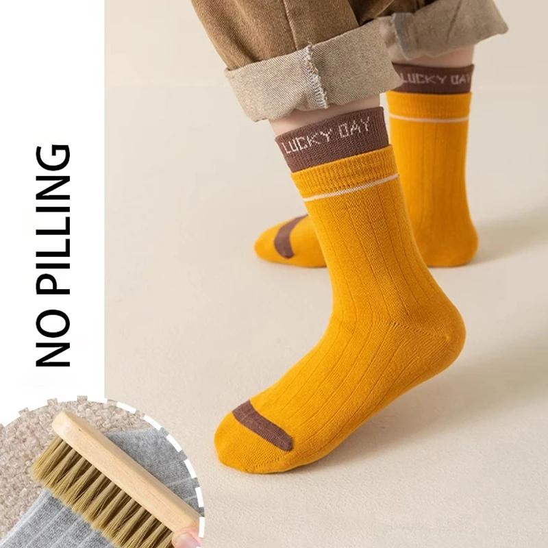 5 пар весенних носков средней длины с двойным воротником для мальчиков, модные спортивные носки с высокой посадкой для девочек, осенняя одежда для детей, теплая