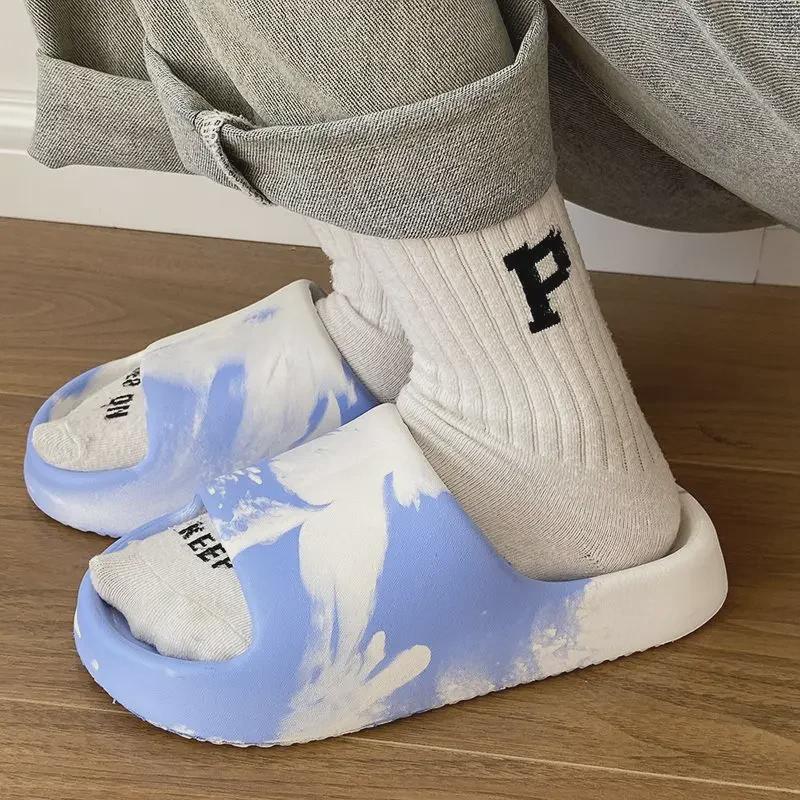 Летние тапочки в уличном стиле из ЭВА на толстой подошве для мужчин и женщин: Дизайн Splash Ink, идеально подходит для улицы, дома и ванной.