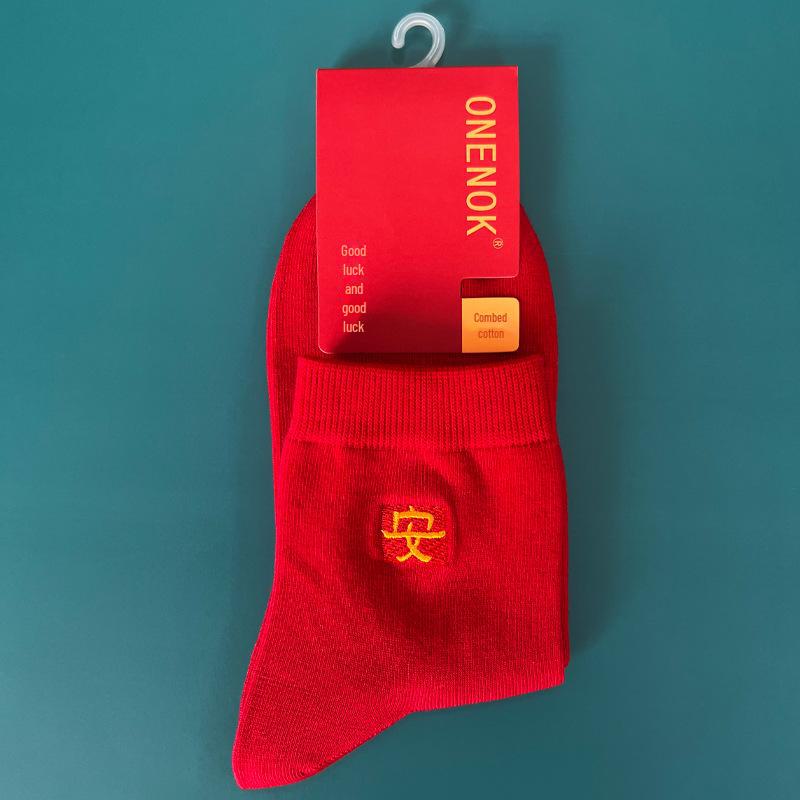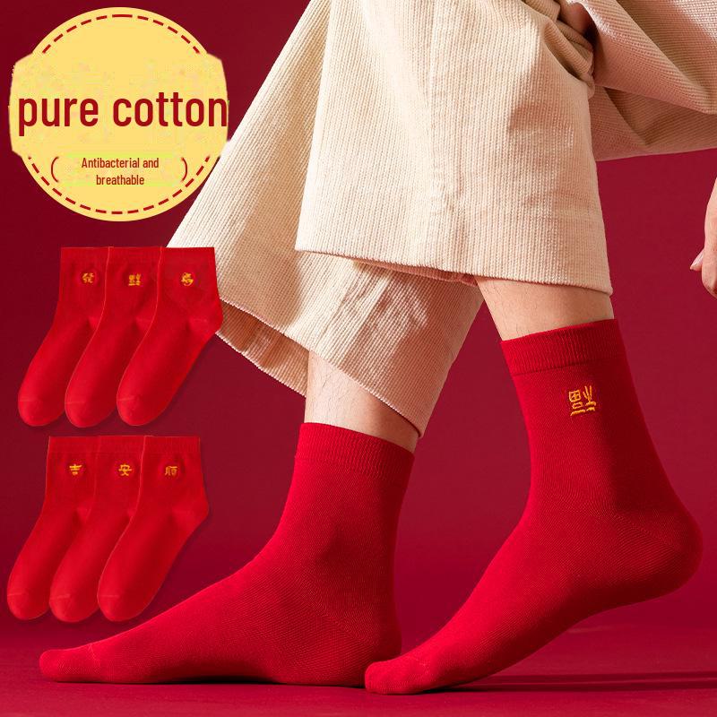 «Красные носки из чистого хлопка — летняя версия»: Средний размер для мужчин и женщин, идеально подходит для свадеб и Нового года.