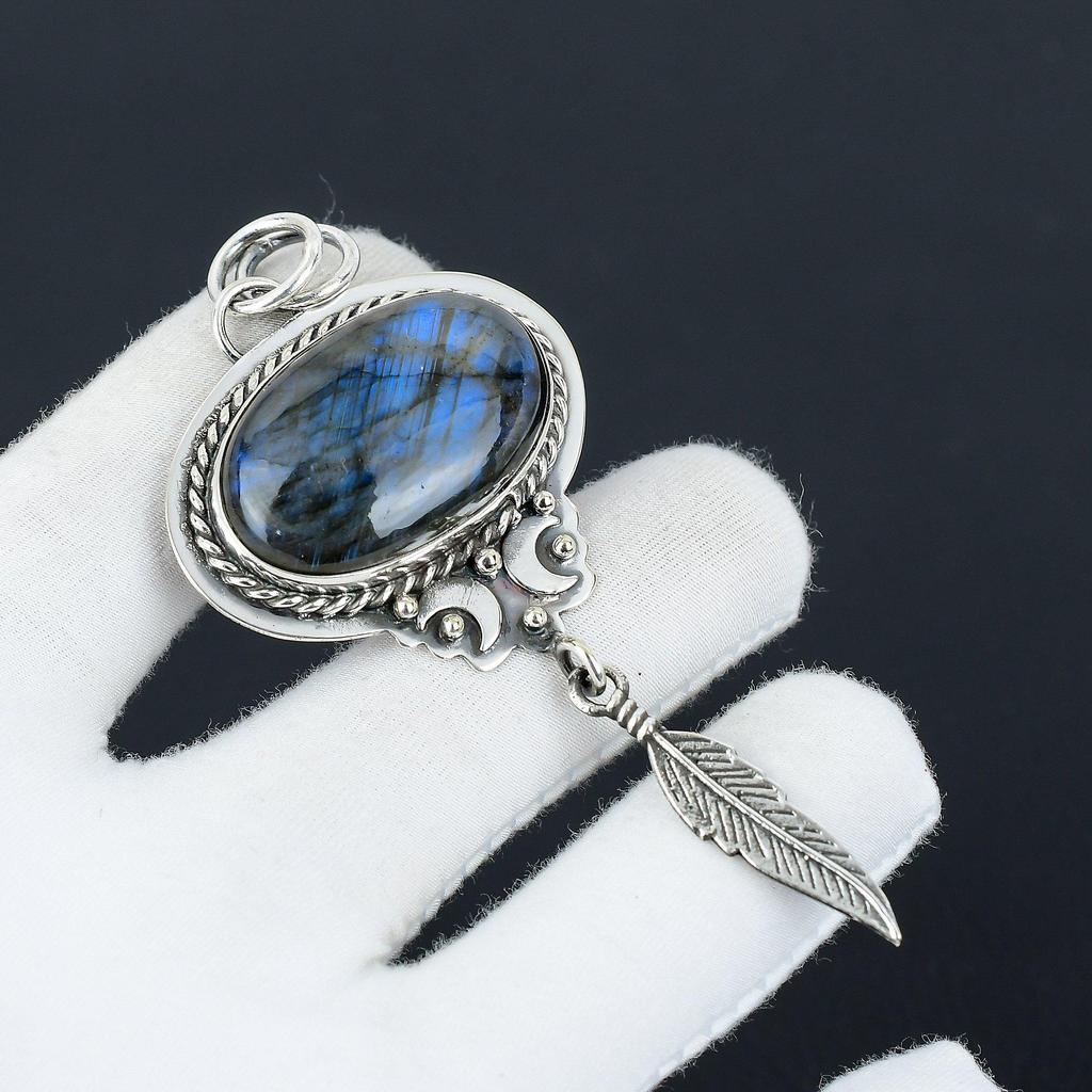 Подвеска из натурального лабрадорита ручной работы с подвеской в виде пера из стерлингового серебра 925 пробы – идеальный подарок на Рождество, Новый год или любой другой праздник для нее