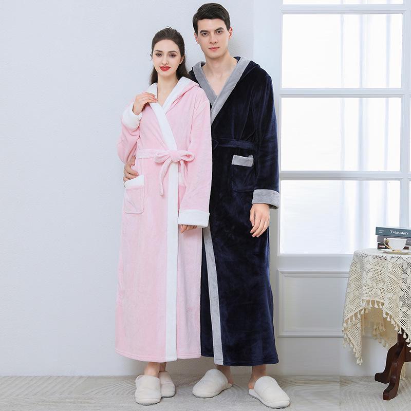 Зимняя ночная рубашка из кораллового флиса: Плотный фланелевый халат для пар, длинная пижама для мужчин и женщин, уютная домашняя одежда на осень/зиму.