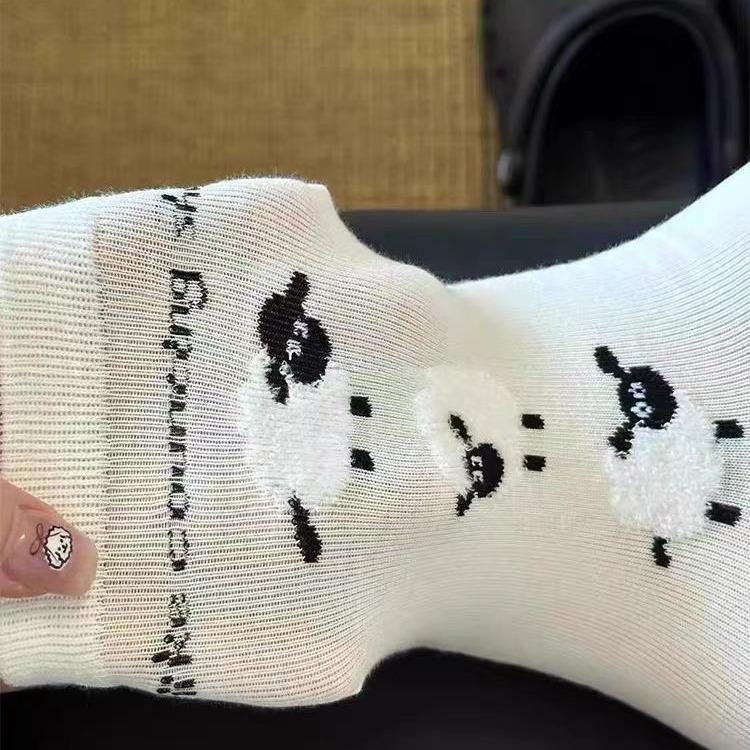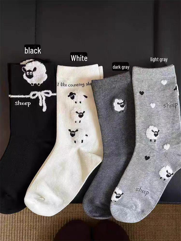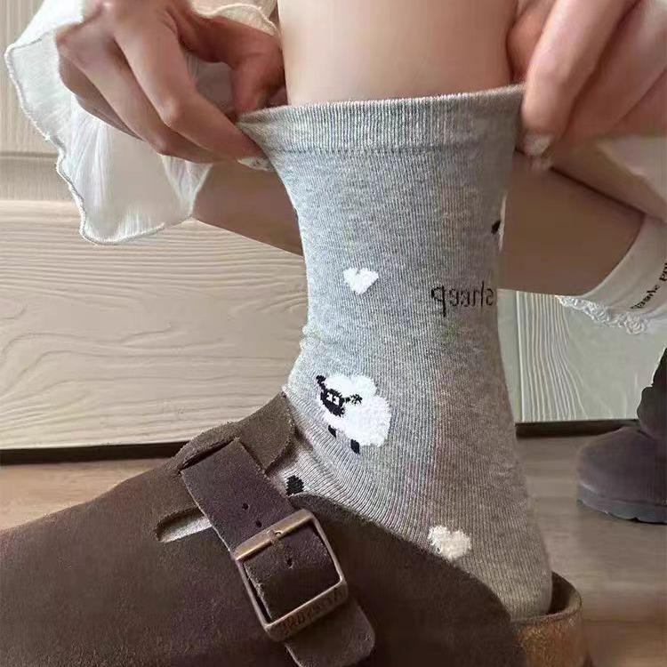 Носки средней длины с флокированной овечьей шерстью в корейском стиле - милый дизайн для колледжа ранней осени