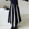 Осенне-зимняя плиссированная шерстяная юбка А-силуэта с высокой талией — юбка-зонтик миди в стиле ретро с цветными блоками для женщин.