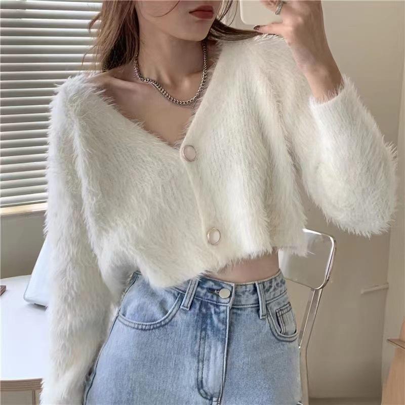2023 Весна Короткий рукав Вязаный кардиган из искусственной норки - Вышитый свитер для горячей девушки, открывающий талию — купить товар онлайн с бесплатной доставкой по всему миру!