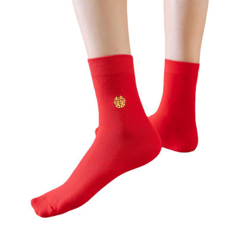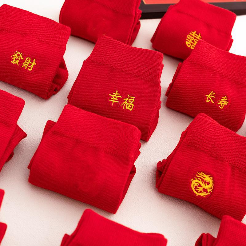 Красные вышитые носки для свадьбы со знаком зодиака для мужчин и женщин - празднование года Быка