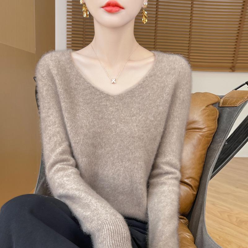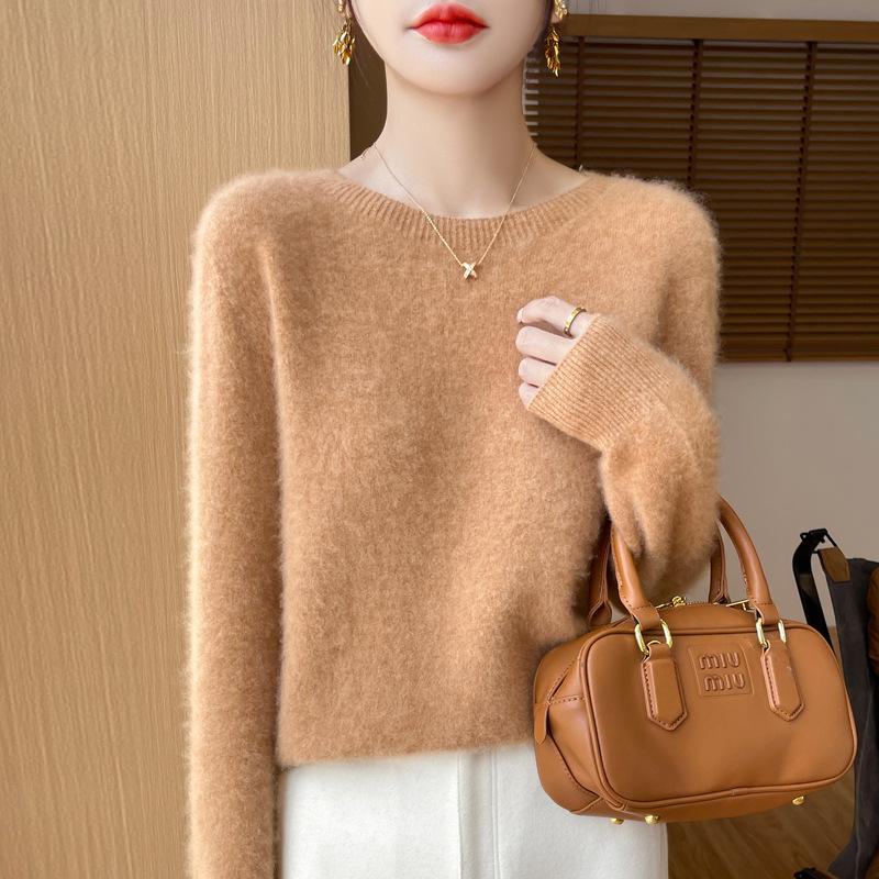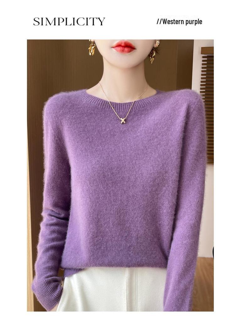 Женский свободный вязаный свитер из 100% чистой шерсти на осень/зиму