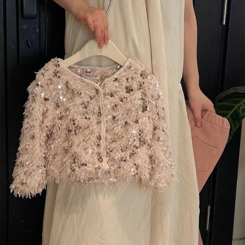 Шуба для девочек с пайетками: Верхняя одежда с длинными рукавами для детей от 3 до 8 лет, идеально подходит для весны и осени.