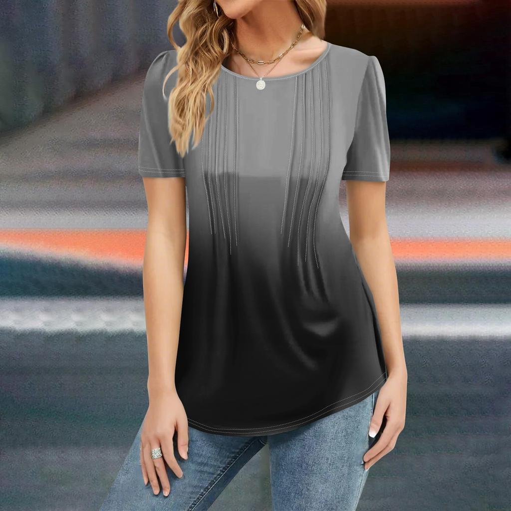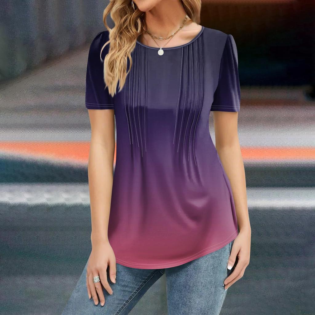 Женская мода повседневная рубашка с коротким рукавом и принтом градиента, свободный джемпер