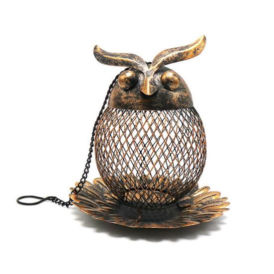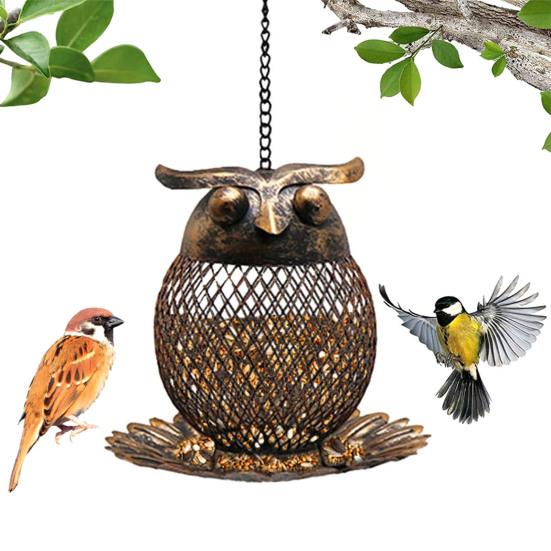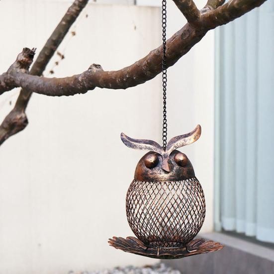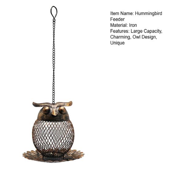 Кормушка для диких птиц на открытом воздухе, дизайн совы, подвесная кормушка для колибри с крючком, металлическая сетка, кормушка для птиц для наружного двора, балкона, садового декора