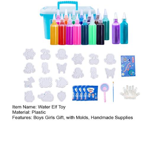 Представляем игрушку «Водяной эльф» — увлекательное занятие для детей, которое можно сделать своими руками! Посмотрите, как гидрогель превращается в яркие, эластичные игрушки с помощью всего лишь воды. В этот творческий набор игрушек входит 18 формочек, бутылочки с альгинатом натрия, перламутровый порошок, порошок лактата кальция, рыболовная сеть, кисточка, перчатки и инструкция по эксплуатации.
