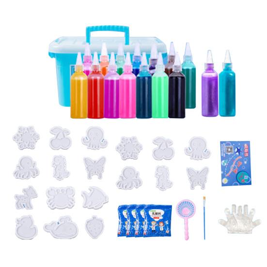 Комплексный набор: Дайте волю творчеству с помощью 18 форм, 14 бутылочек с альгинатом натрия, перламутрового порошка, упаковок порошка лактата кальция, сетки, кисточки, перчаток и подробных инструкций.. Этот комплексный набор обеспечивает детям от 5 лет и старше беспрепятственный процесс творчества.