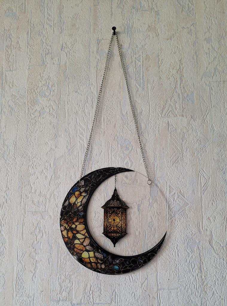 Полумесяц для украшения дома (участка) Исполнение аккуратное В комплекте цепочка Диаметр 20 см Материал акрил Смотрится очень интересно 👍 Доставка ровно месяц с живым треком