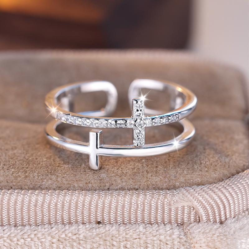 Двухслойное белое циркониевое крестообразное кольцо для женщин из настоящего серебра 925 пробы, открытые регулируемые кольца для пальцев, украшения для вечеринки и свадьбы