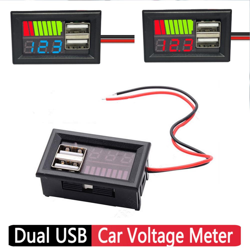 12 В автомобильный вольтметр, измеритель напряжения, двойной выход USB, индикатор емкости аккумулятора 5 В 2 А, тестер мощности для свинцово-кислотных аккумуляторов