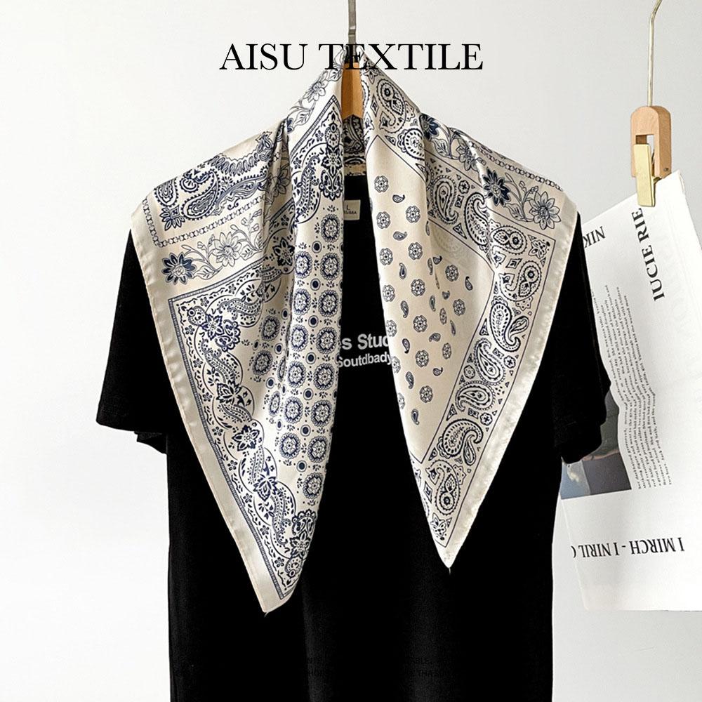 Новый высококачественный шелковый шарф для женщин, ретро-черно-белый шарф с принтом кешью, небольшой квадратный шарф в паре с платком на голову