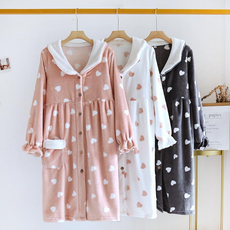 Новая осенне-зимняя женская ночная рубашка из фланели и бархата, утолщенная, с длинными рукавами, большого размера, длинная юбка, пижама, домашняя одежда