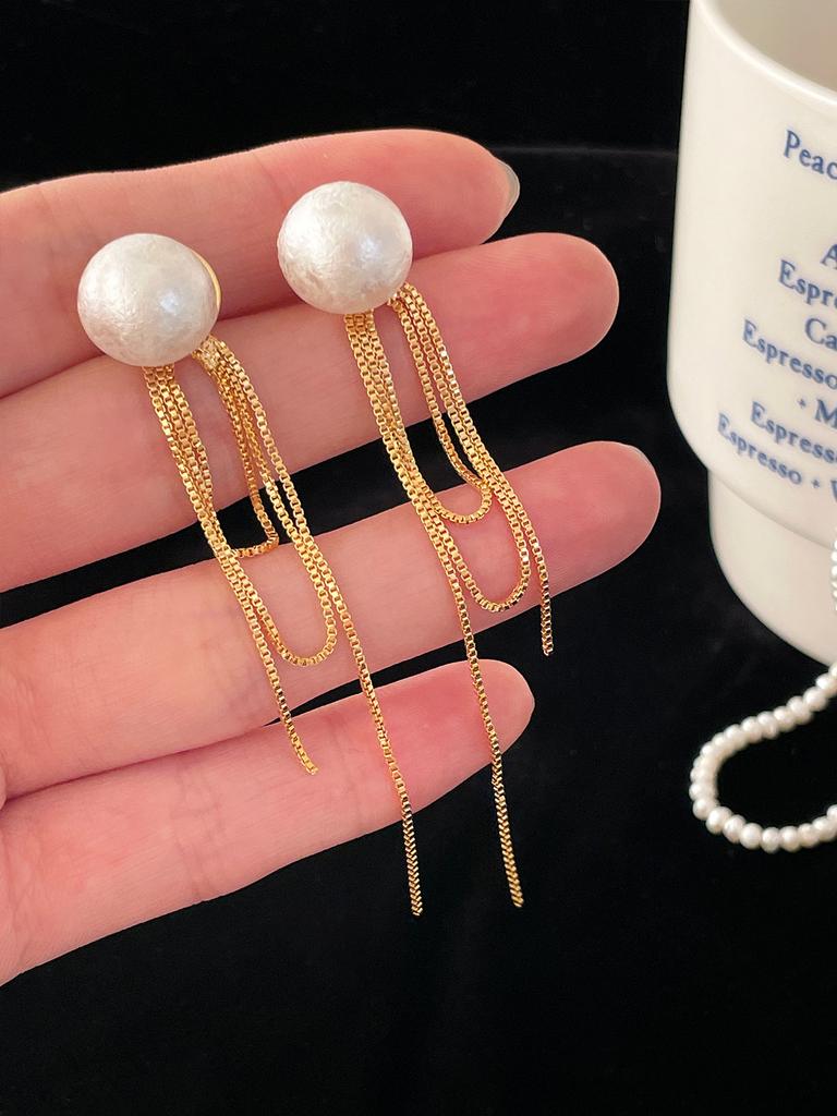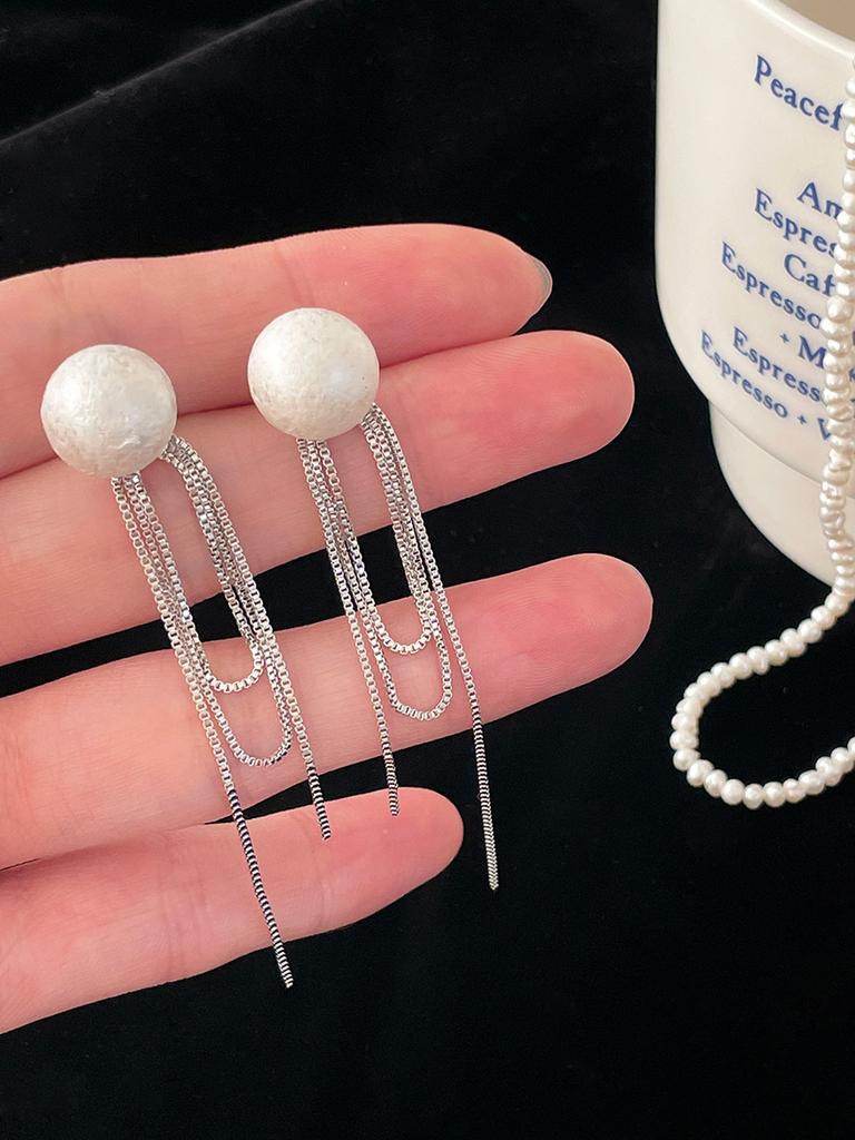 French retro pearl stud earrings light luxury unique high-end fringed silver needle earrings exquisite fashion new earrings