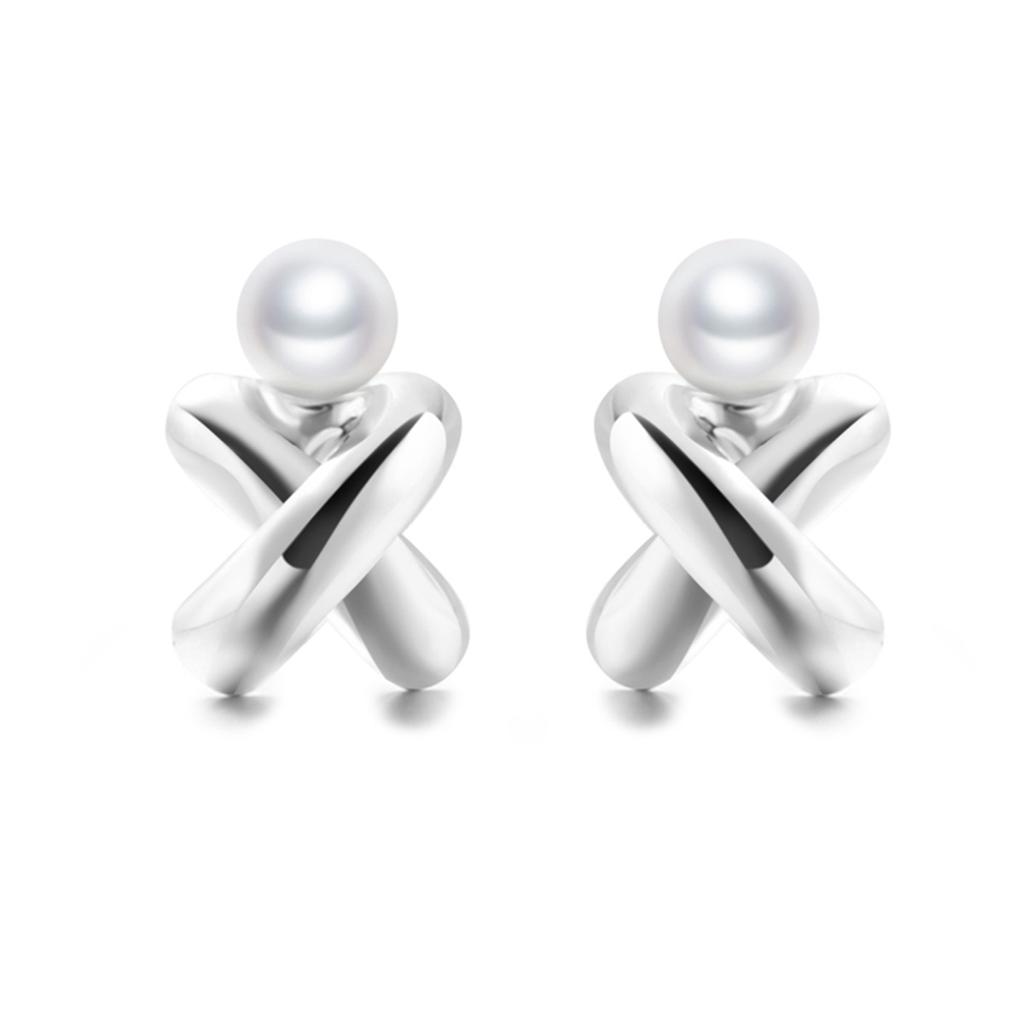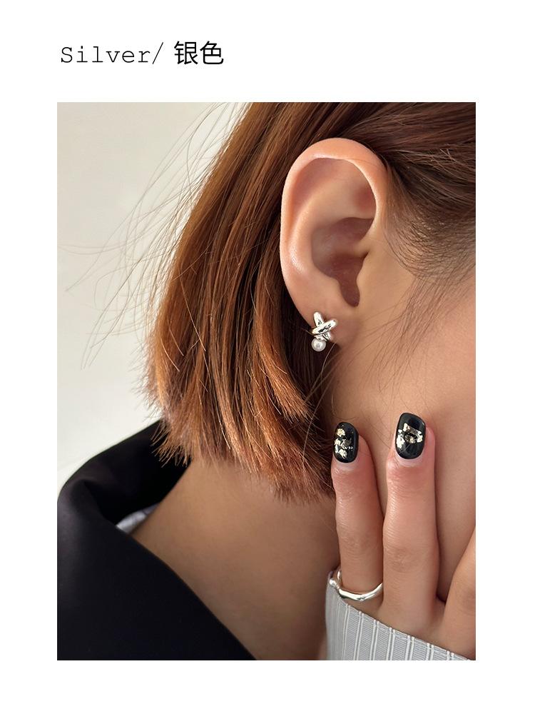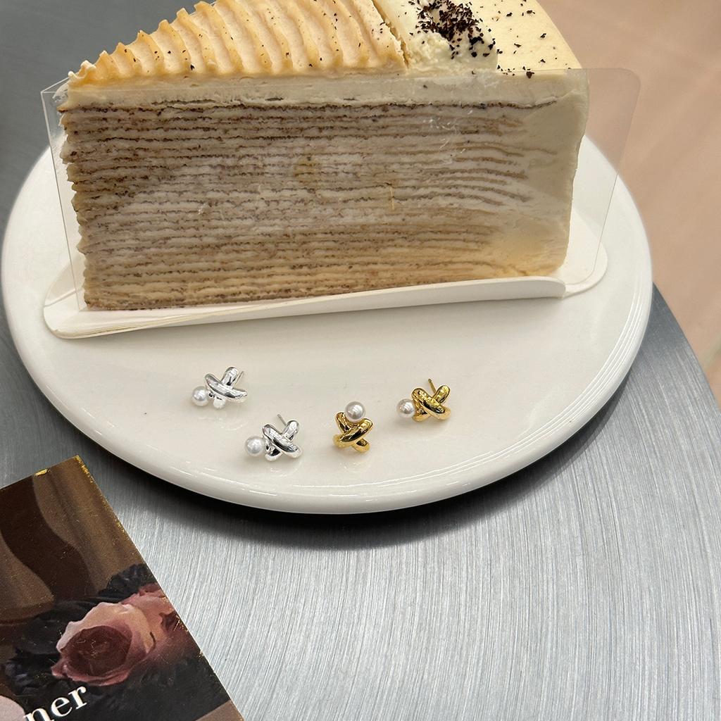 Winding cross pearl mini stud earrings women's new light luxury niche design sense advanced 999 silver needle exquisite earrings