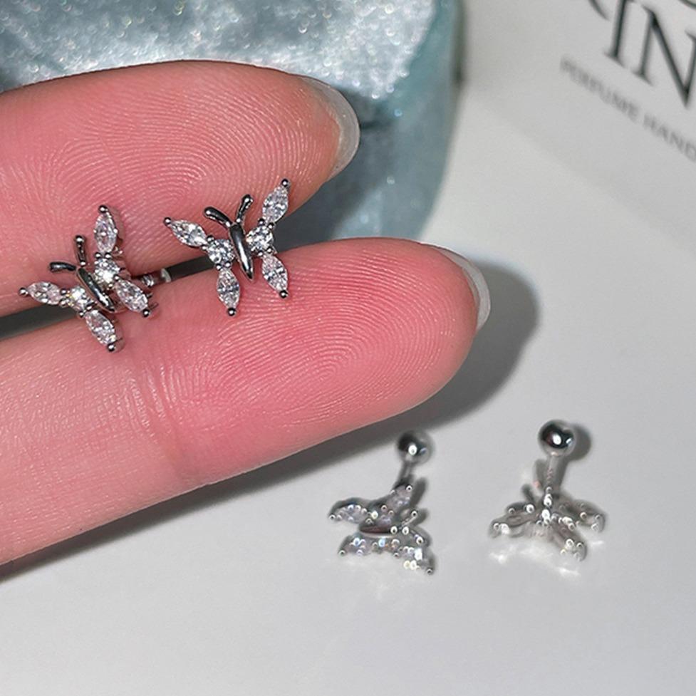 Серьги-гвоздики в форме бабочки из серебра 925 пробы, женские, легкие, роскошные, нишевые, высококачественные, взрывные, циркониевые, изысканные, холодные серьги