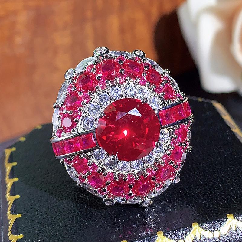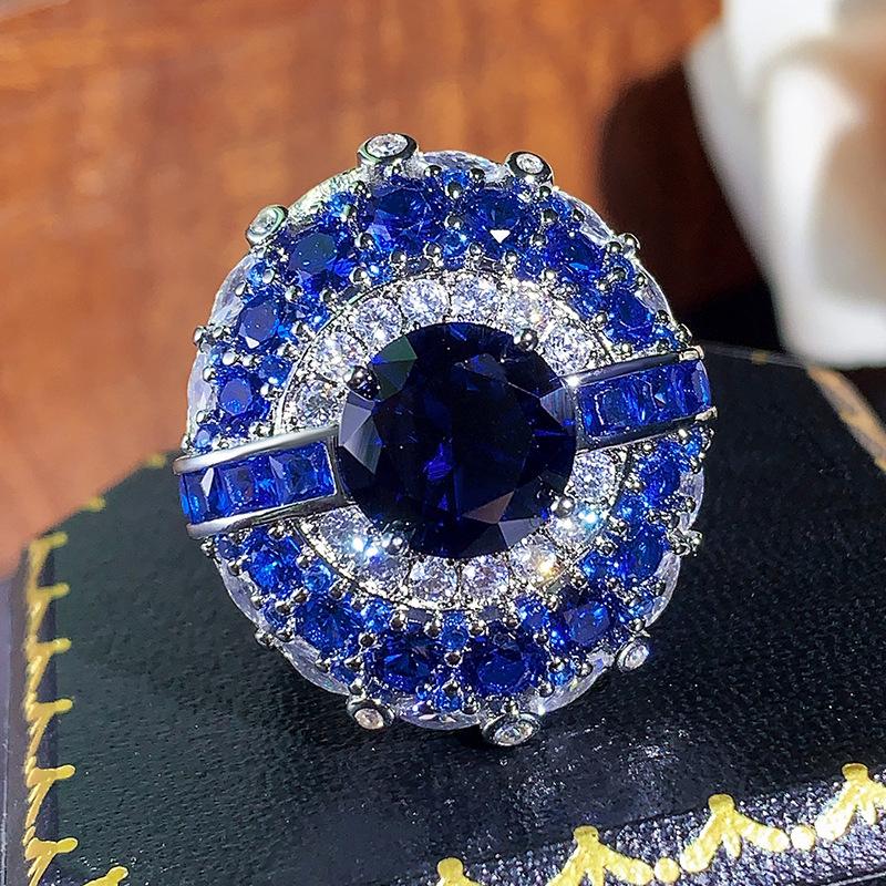 Осень и зима новое кольцо ювелирные изделия синяя шпинель красный корунд заднее кольцо легкое роскошное открытое женская мода универсальный