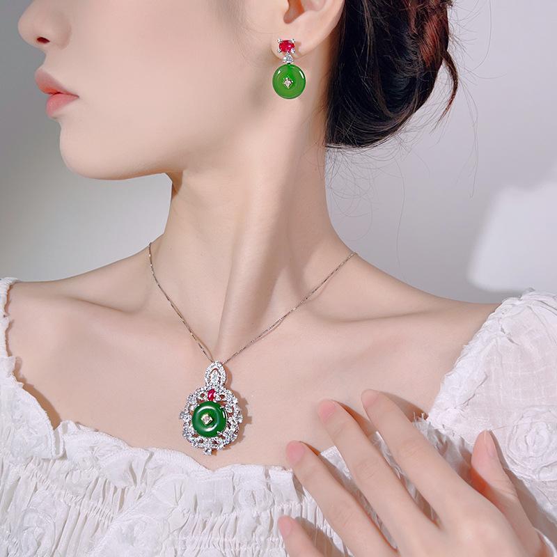 Новый император ожерелье серьги комплект ювелирных изделий имитация натурального халцедона темперамент серьги инкрустированные агат пряжка безопасности для женщин