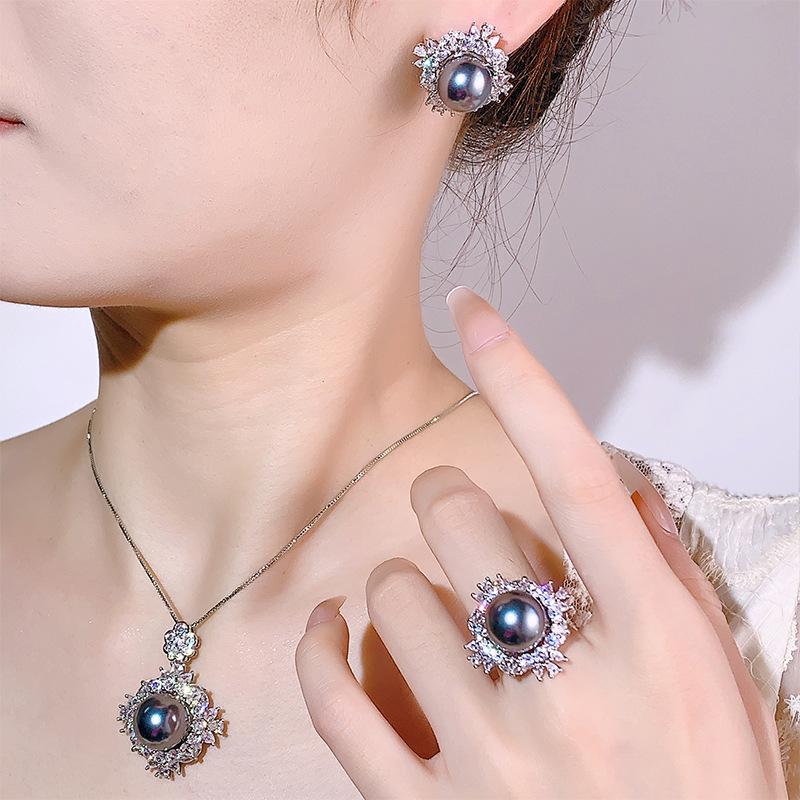 Ювелирные изделия Жемчужное ожерелье Комплект из жемчужных колец Серебряные серьги-иглы Комплект из трех предметов