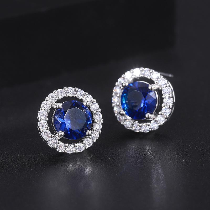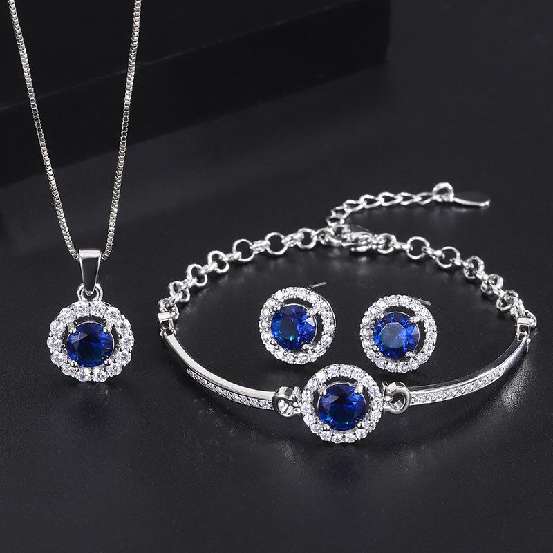 Ювелирные изделия Серьги-гвоздики из трех частей с синим цирконием, универсальный женский браслет с сапфиром, королевское ожерелье с сапфиром